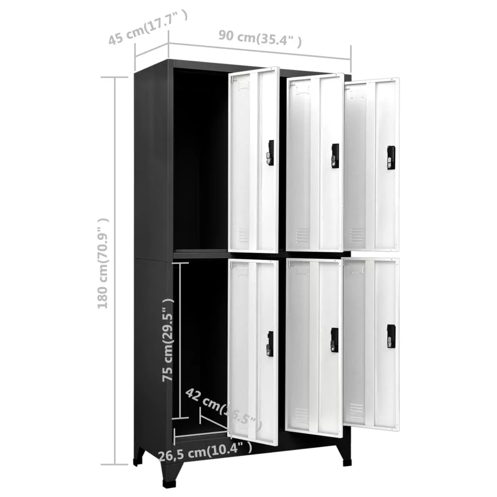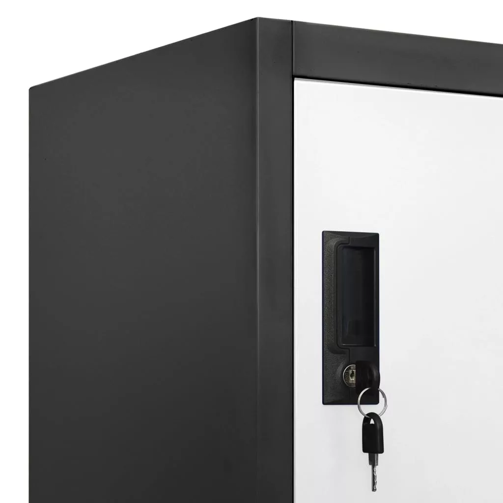 antracitszürke-fehér acél zárható szekrény 90 x 45 x 180 cm