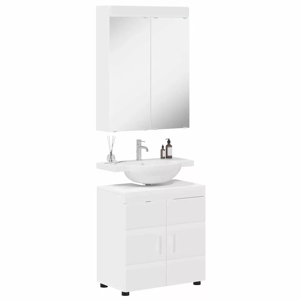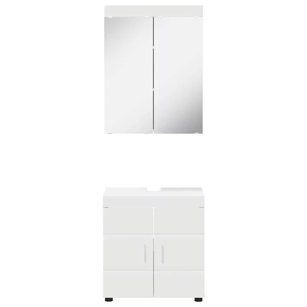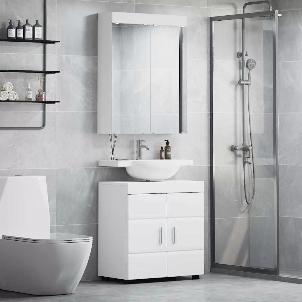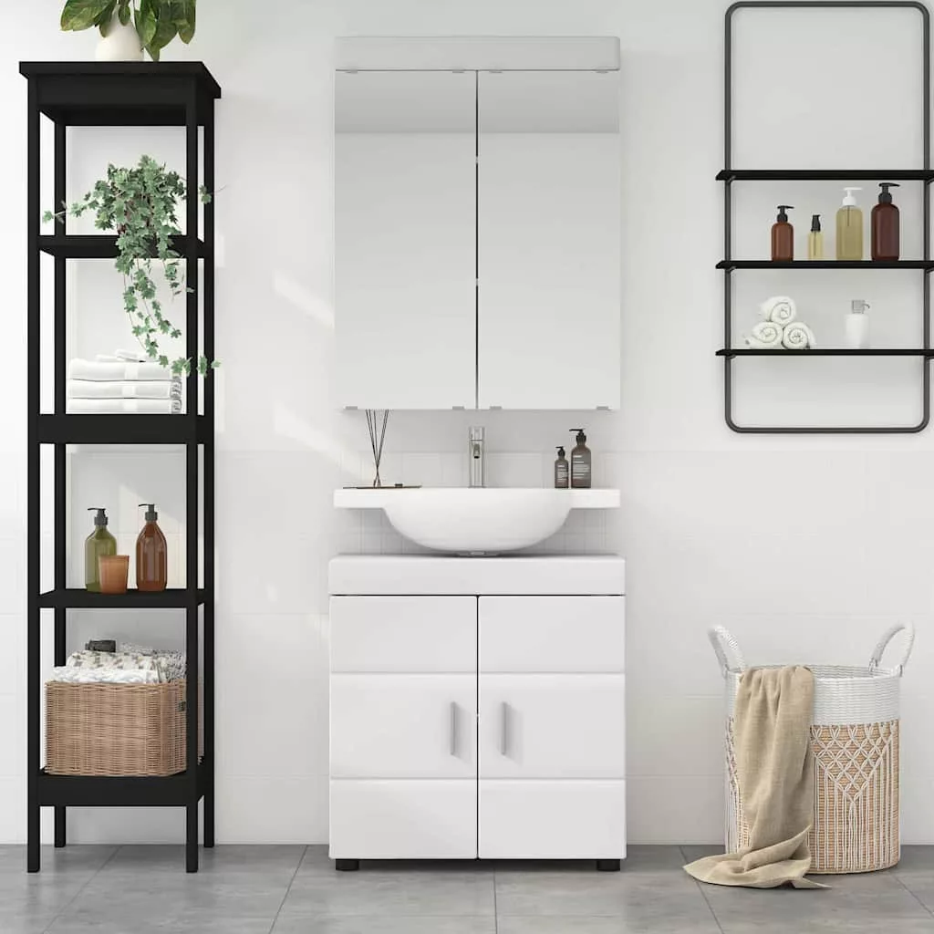 Fürdőszoba szekrény szett tükörrel ajtóval TULUM Fehér Faanyag