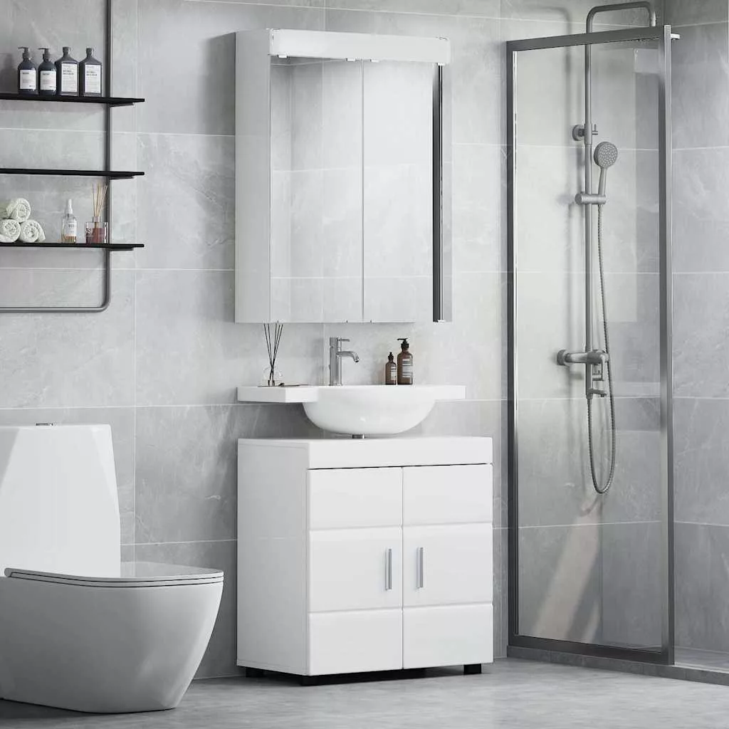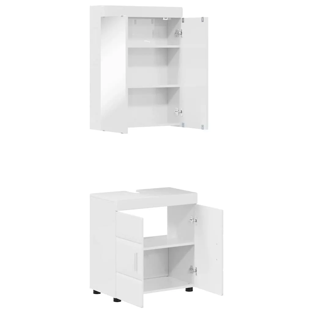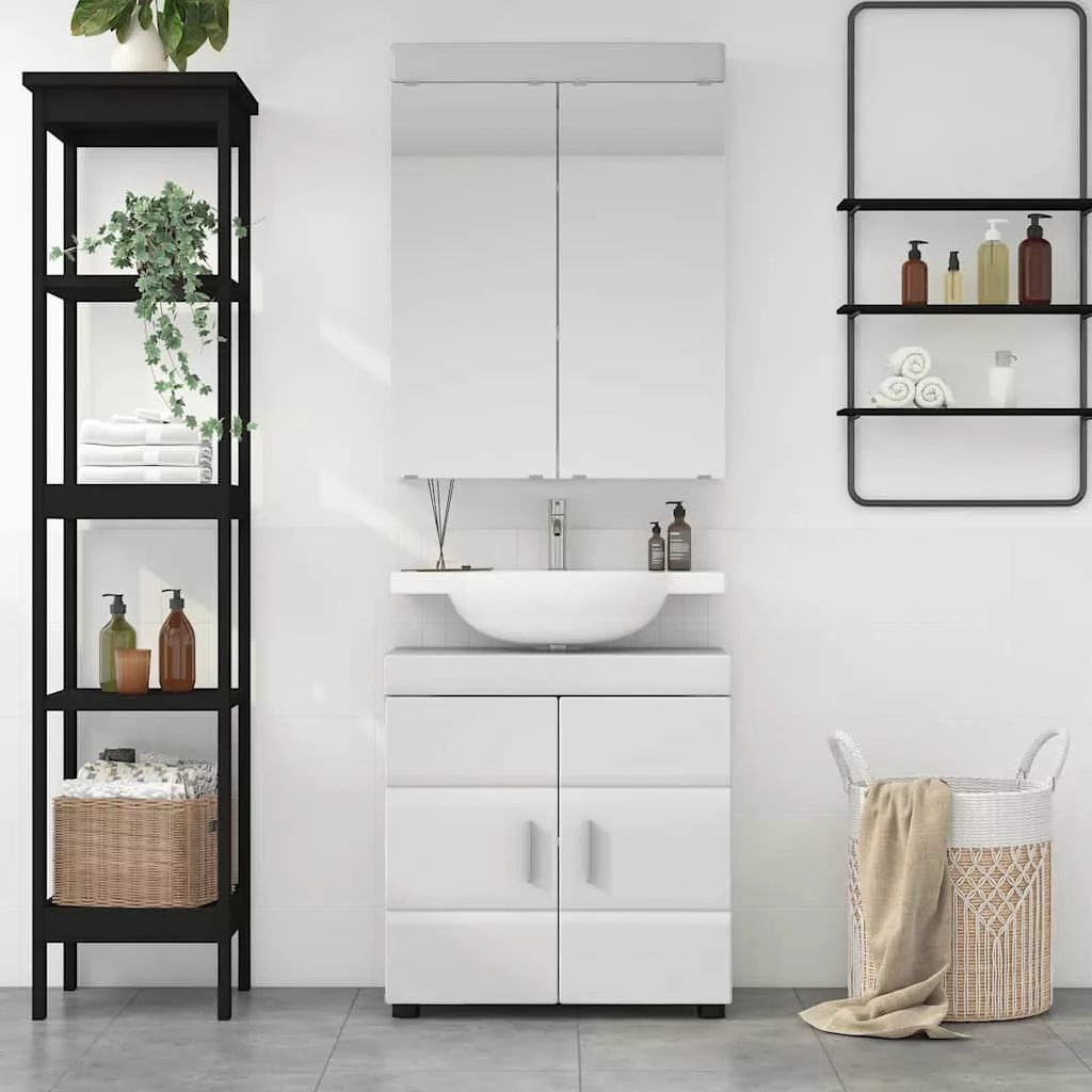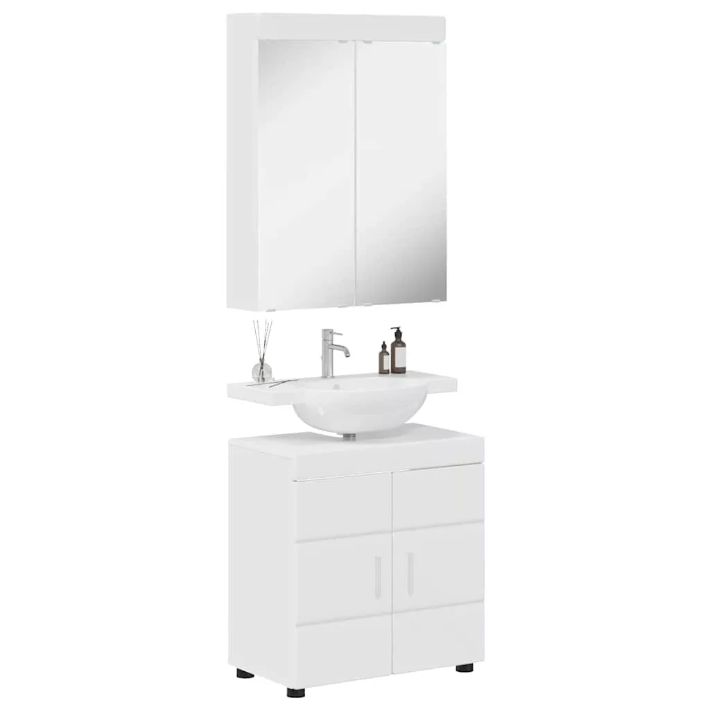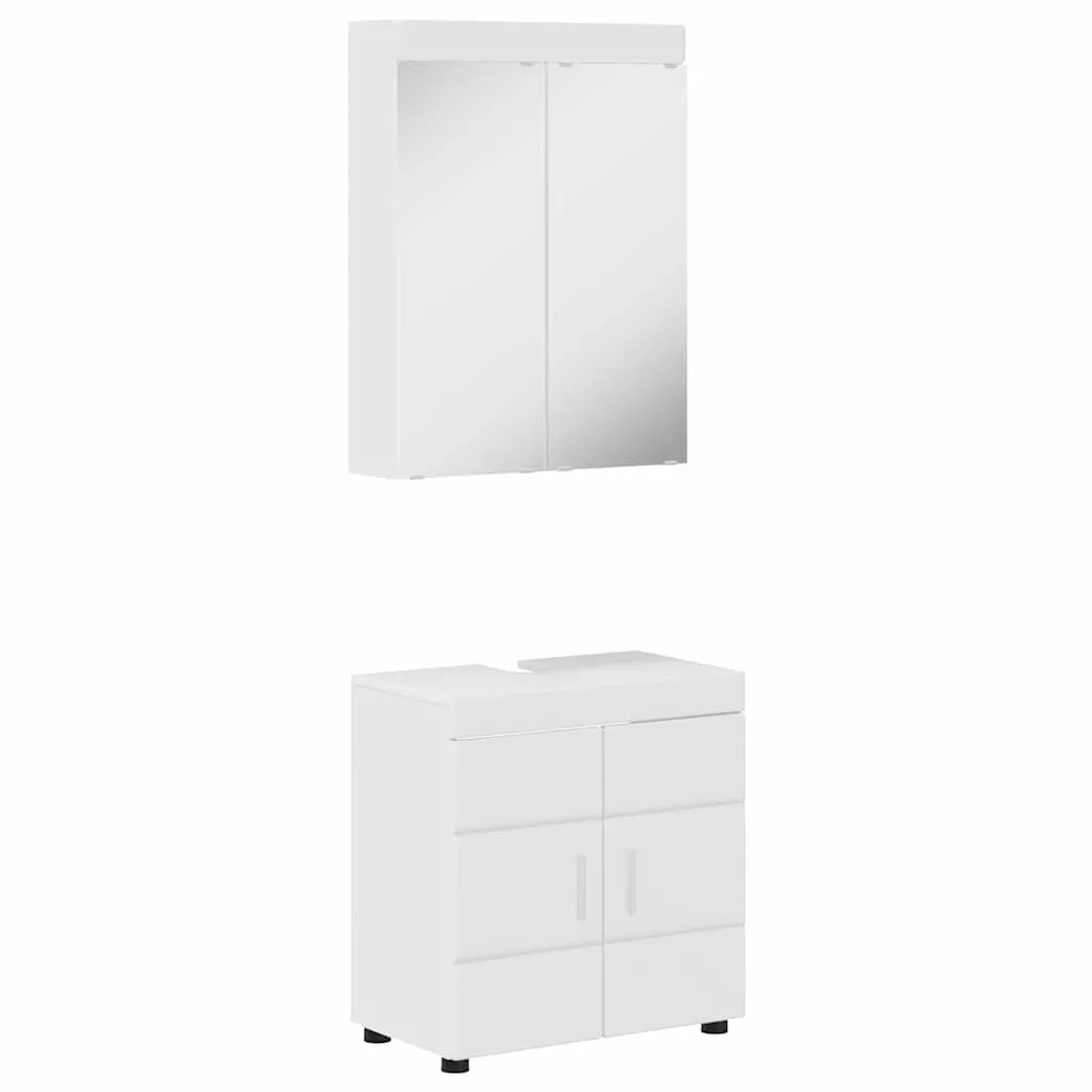Fürdőszoba bútor szett ajtóval TULUM Magas Fényű Fehér Faanyag