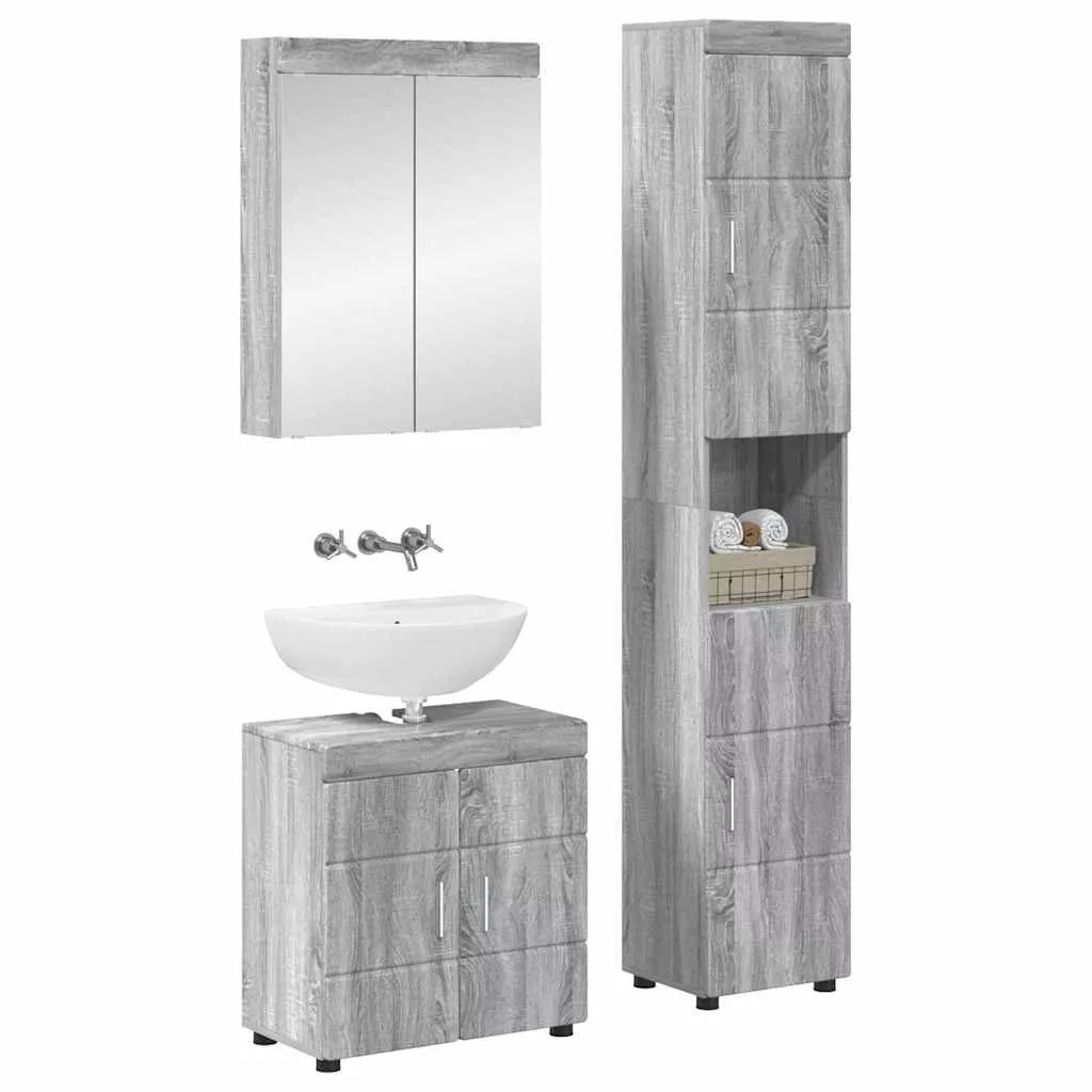 Fürdőszoba bútor szett polcokkal TULUM Szürke Sonoma Faanyag