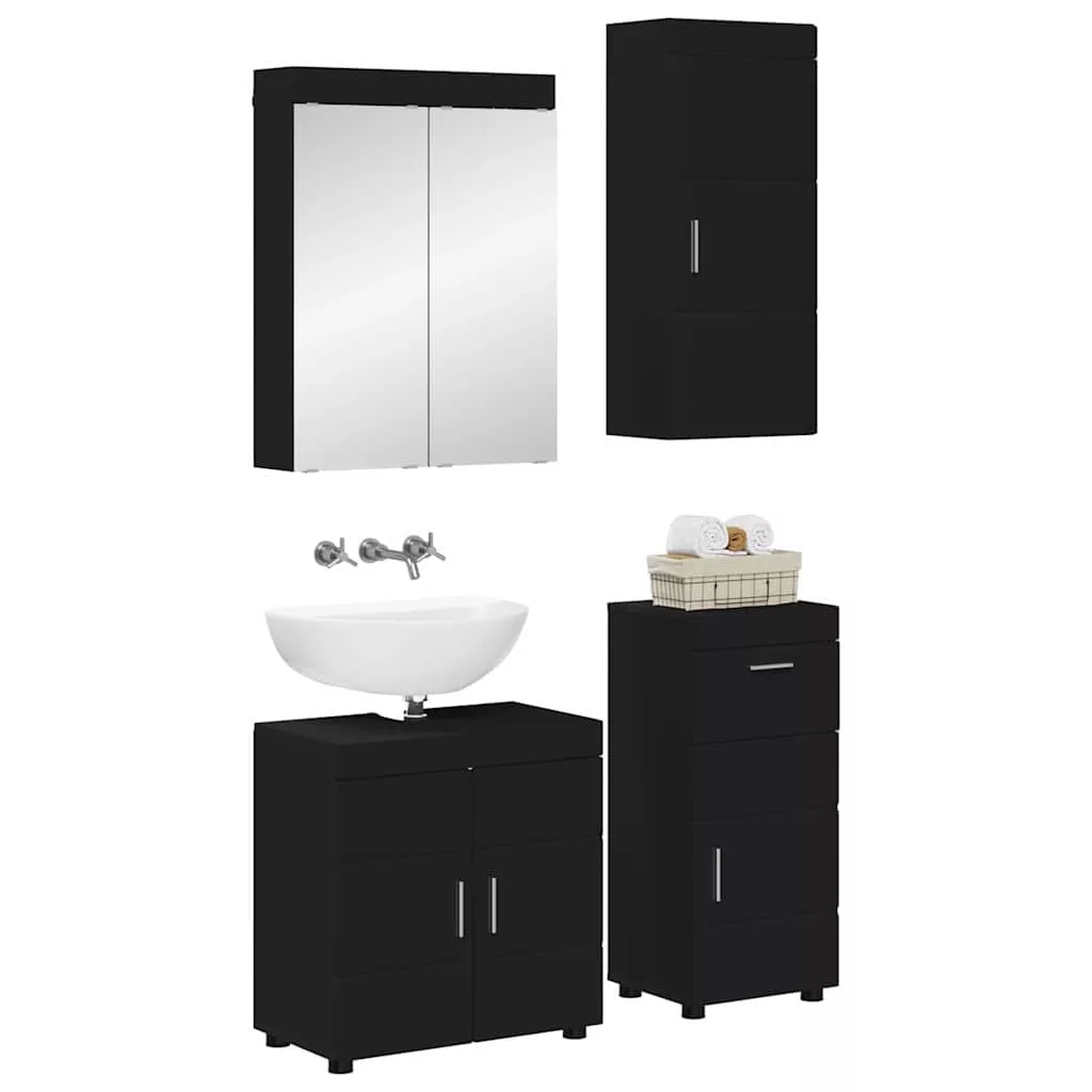 Fürdőszoba bútor szett fiókkal polcokkal TULUM Fekete Faanyag