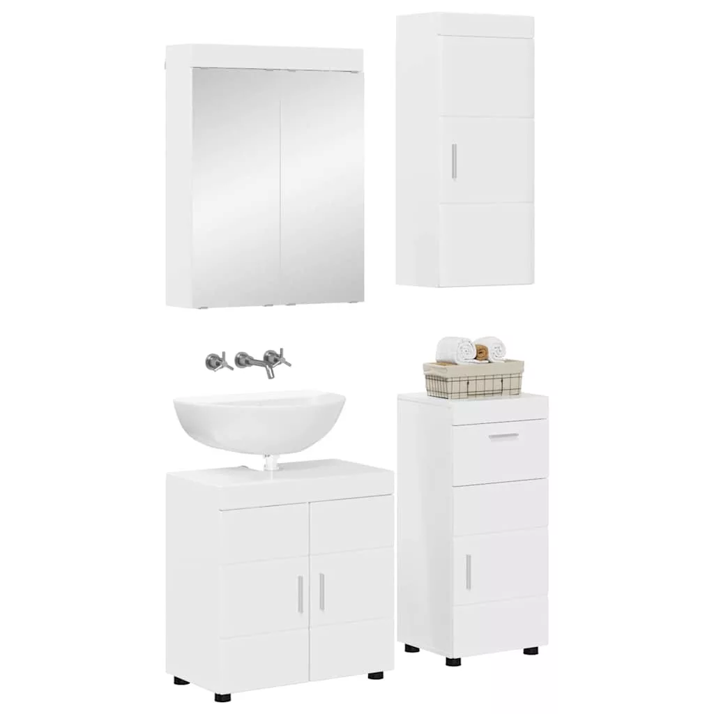Fürdőszoba bútor szett fiókkal TULUM Magas Fényű Fehér Faanyag