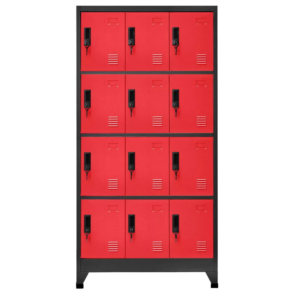 antracitszürke-piros acél zárható szekrény 90 x 45 x 180 cm