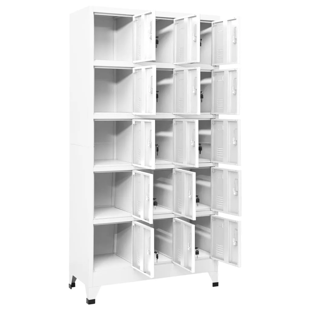 Ez a modern stílusú zárható szekrény bármilyen szoba vagy iroda nagyszerű dekoratív kiegészítője lesz. Ez a tárolószekrény acélból készült, így tartós és könnyen tisztítható. Minden rekesz zárható ajtóval és szellőzőnyílásokkal van ellátva. A szekrény bőséges tárolóhelyet nyújt ruhák és egyéb személyes holmik biztonságos tárolására. Emellett a névcímketartó lehetővé teszik kellékei rendezett tárolását. Ez a szekrény iskolákban és irodákban használható különféle tárgyak tárolására.
