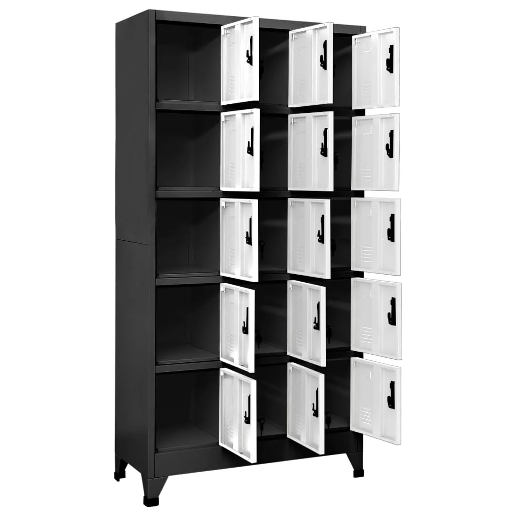 antracitszürke és fehér acél zárható szekrény 90 x 40 x 180 cm