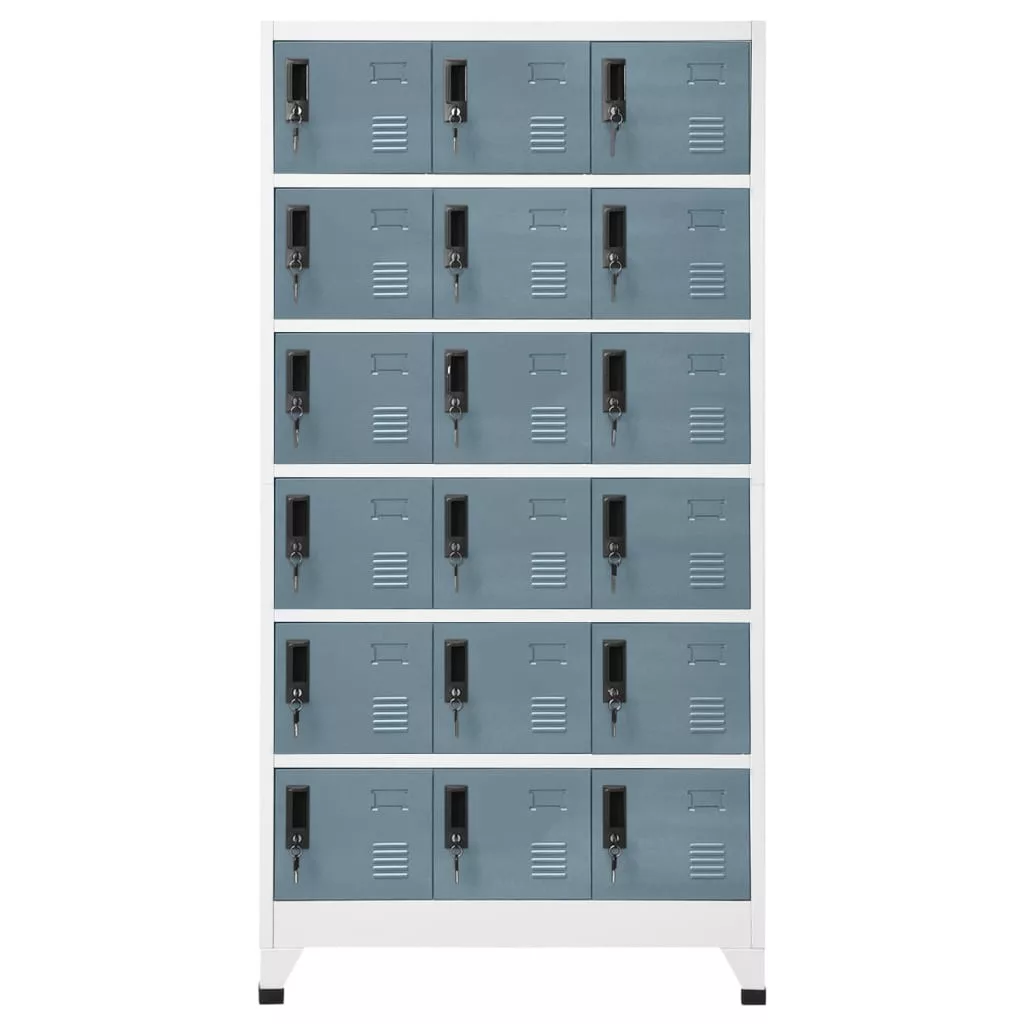 világos- és sötétszürke acél zárható szekrény 90 x 40 x 180 cm