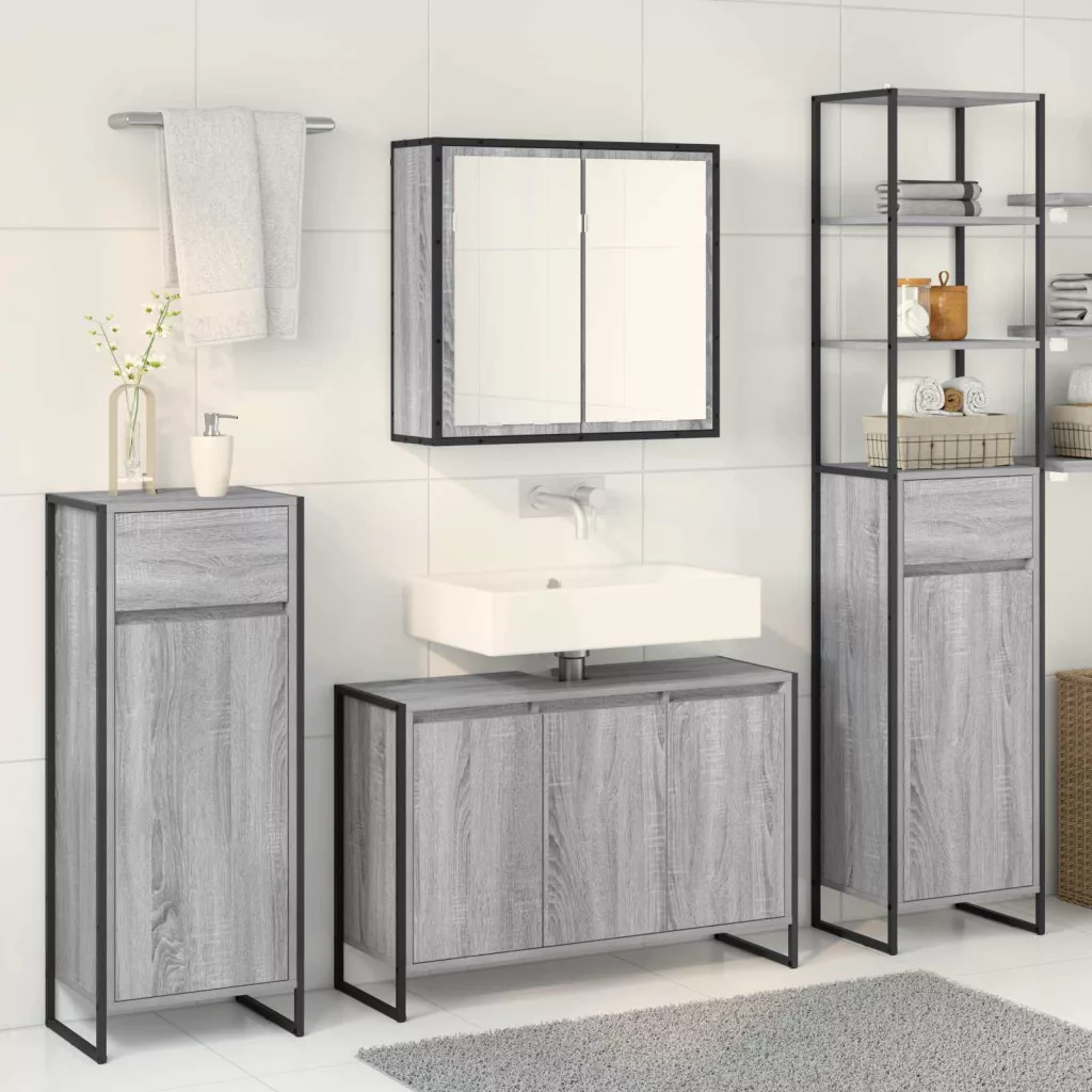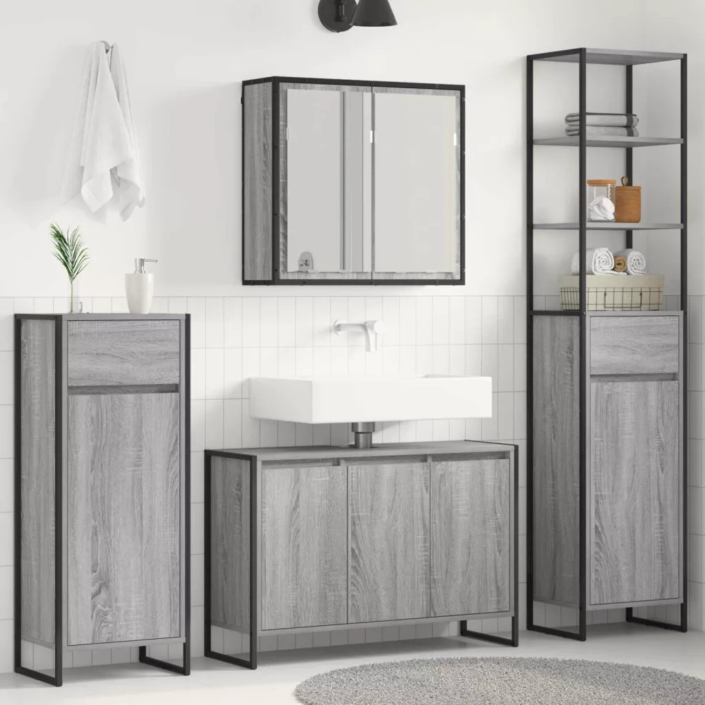 Fürdőszoba bútor szett fiókkal polcokkal Szürke Sonoma Faanyag