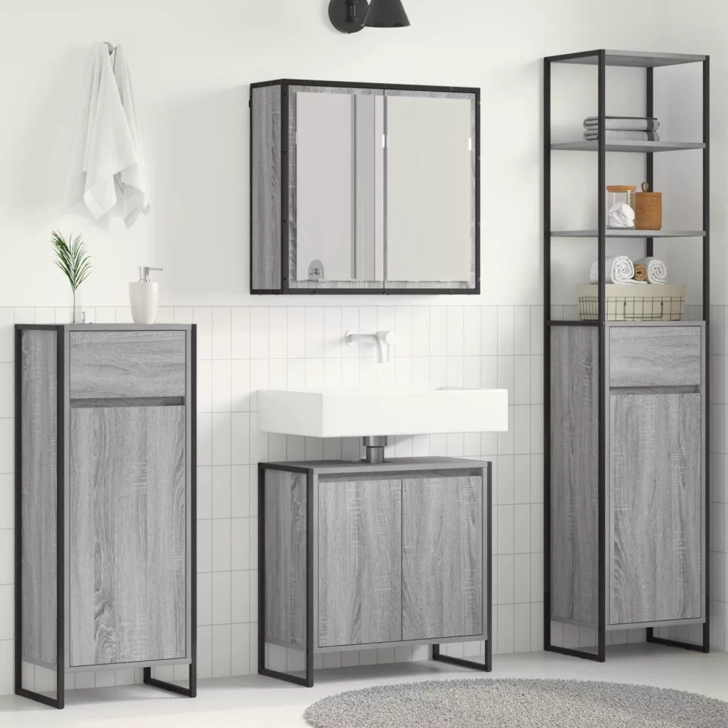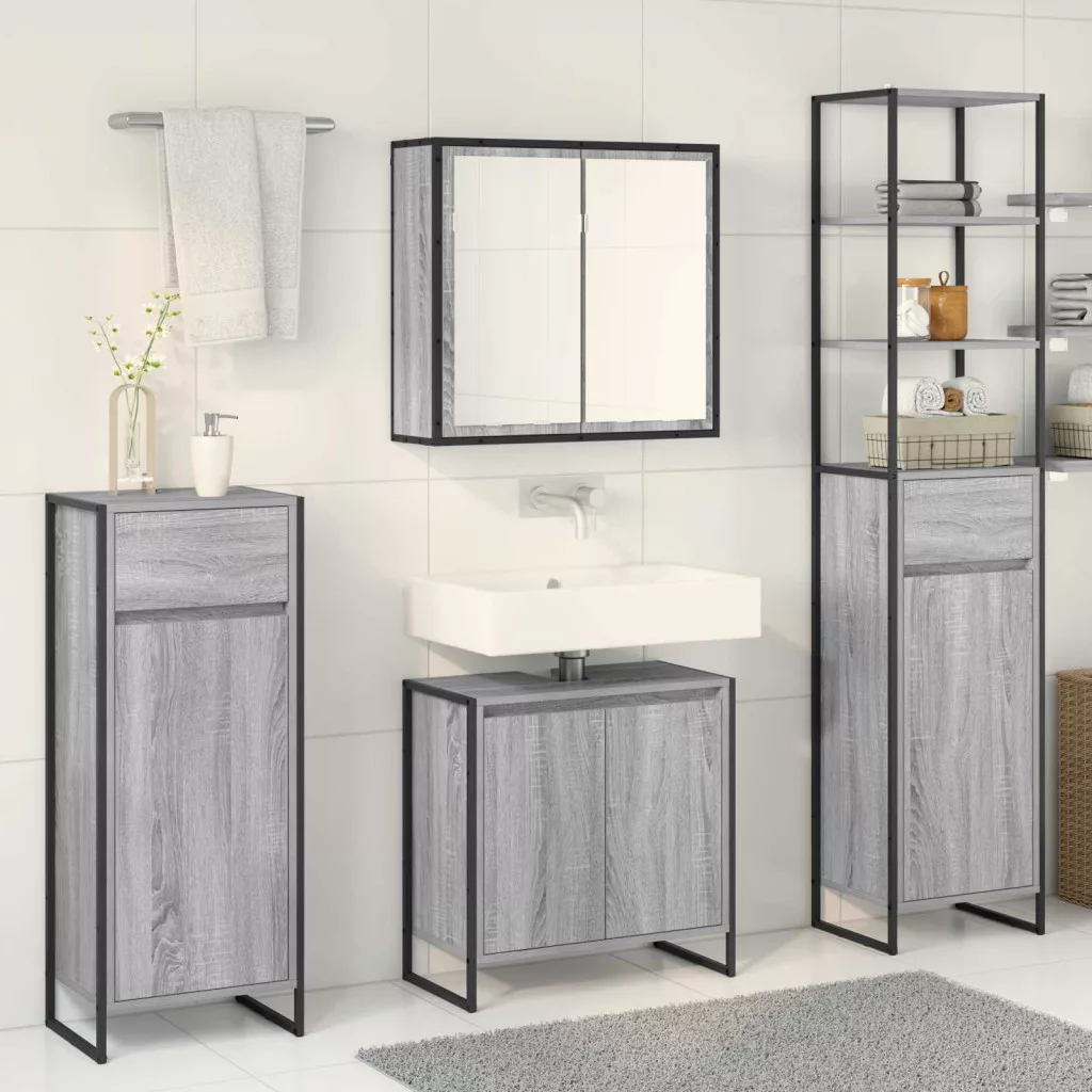 Fürdőszoba bútor szett fiókkal polcokkal Szürke Sonoma Faanyag