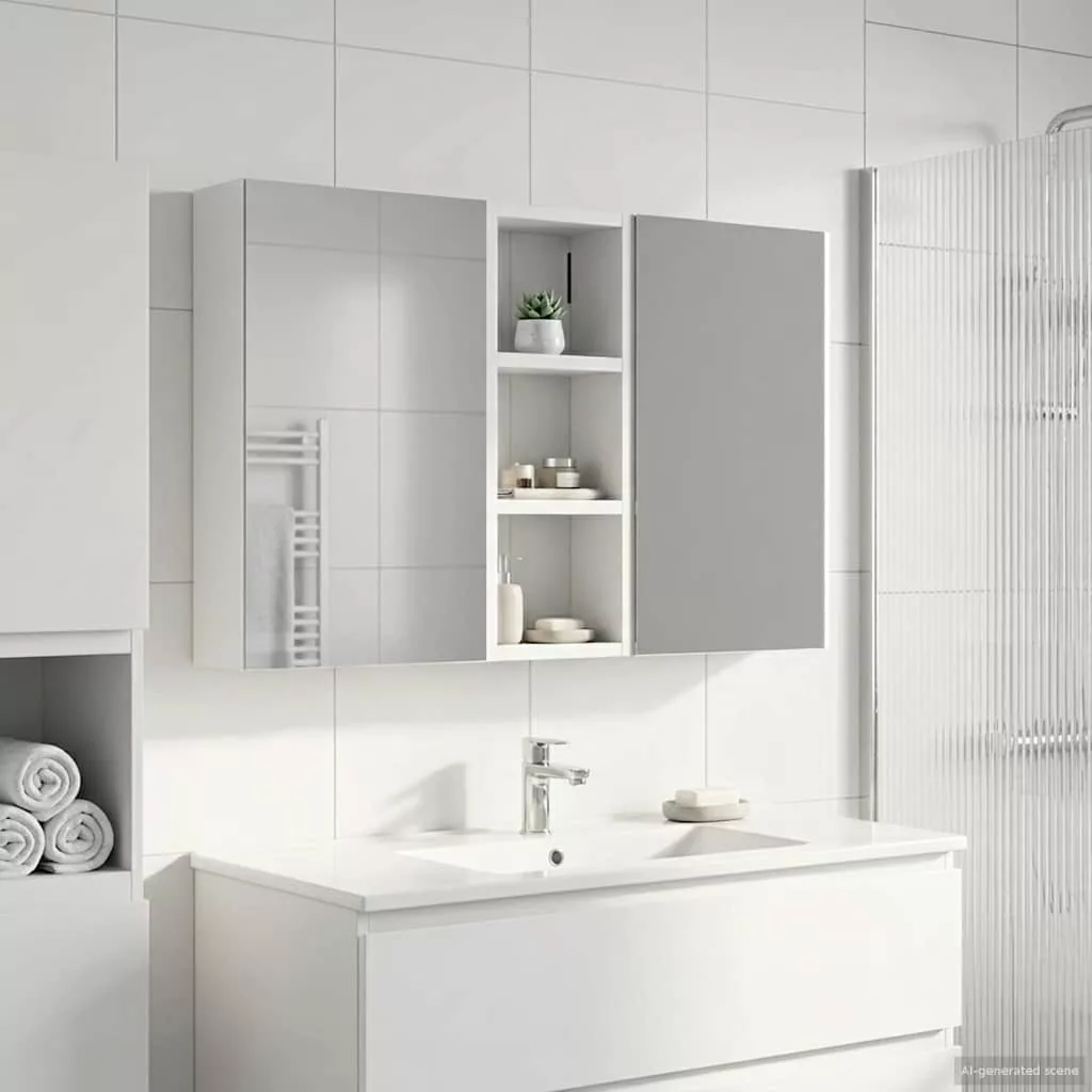 Ez a modern fürdőszobai szekrénykészlet a kortárs stílus megtestesítője, ami ötvözi a dizájnt és a praktikus használhatóságot. Remekül illik a mai fürdőszobákhoz, mint tárolóegység és stílusos dísz. A falra szerelés miatt több hely marad a padlón, míg a legfontosabb dolgokhoz könnyen hozzáférhetsz. A kétirányú tükör és az integrált LED világítás még hangulatosabbá varázsolja a fürdőszobát, friss és rendezett környezetet teremtve a mindennapok rutinjához. Engineered wood construction: Ez a szekrény engineered wood-ból készült, ami szuper stabil és tartós. Az anyag jól bírja a deformációt és a sérüléseket, így hosszú távon megbízható darab marad a fürdőszobádban. Simább felülete elegáns megjelenést ad, amit könnyű karbantartani. Ample storage space: Optimális használatra tervezve a szekrény bőséges tárolóshellyel rendelkezik több polcnak és zsanéros ajtóknak köszönhetően. A praktikus elrendezés segít, hogy a kozmetikumokat könnyen rendszerezhesd, így minden kéznél van. Térkihasználásával csökkenti a rendetlenséget. Innovative two-way mirror: A kétirányú tükör egyedi keveréket kínál a magánéletnek és a láthatóságnak. A külső része hagyományos; viszont a belseje diszkrét megfigyelést tesz lehetővé, amitől kissé elegánsabb lesz a fürdőszobád. Ez a funkció hozzáad egy új dimenziót a modern belső térhez. Efficient LED strip lighting: USB-tápellátású LED csíklámpákkal van felszerelve, ami világos és energiatakarékos világítást biztosít. Ezek növelik a láthatóságot, különösen éjszaka, és békés hangulatot teremtenek. Ideális választás, ha modern világítást keresel. Practical care and maintenance: A szekrény könnyen karbantartható. Hu egy puha, száraz ruhát ajánlott használni, míg a durva vegyszereket érdemes elkerülni, hogy megőrizd az anyag integritását. Ezek az egyszerű utasítások segítenek abban, hogy a szekrény mindig jól nézzen ki a fürdőszobádban.