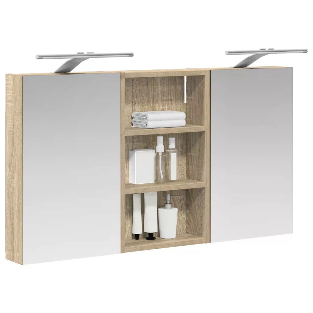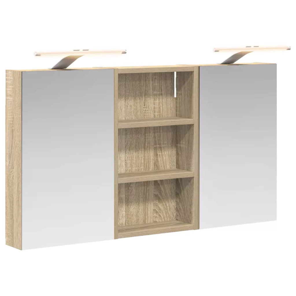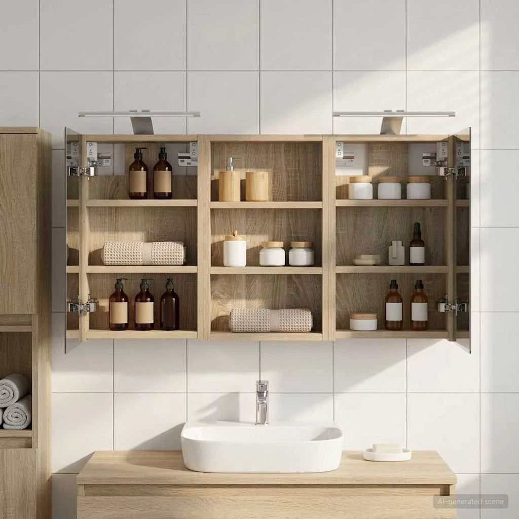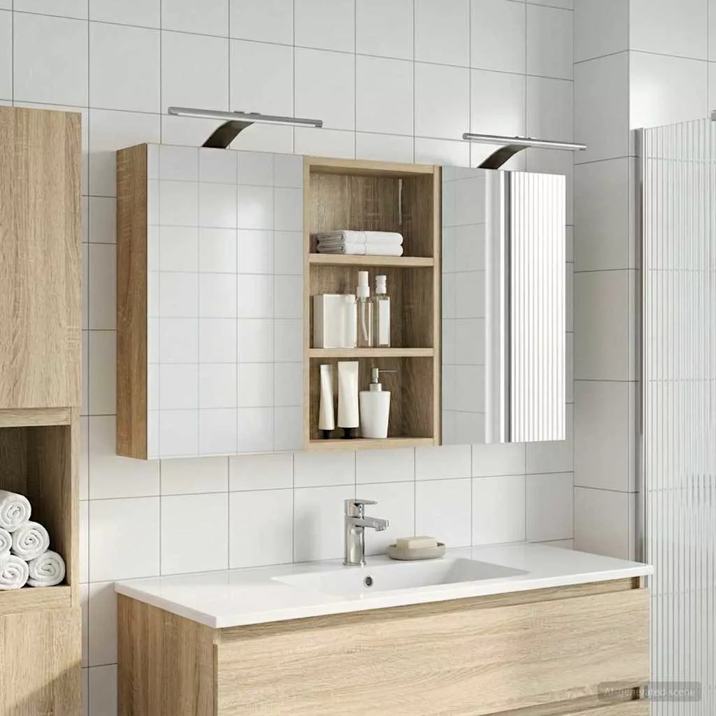 Ez a modern fürdőszobai szekrénykészlet a kortárs stílus megtestesítője, ami ötvözi a dizájnt és a praktikus használhatóságot. Remekül illik a mai fürdőszobákhoz, mint tárolóegység és stílusos dísz. A falra szerelés miatt több hely marad a padlón, míg a legfontosabb dolgokhoz könnyen hozzáférhetsz. A kétirányú tükör és az integrált LED világítás még hangulatosabbá varázsolja a fürdőszobát, friss és rendezett környezetet teremtve a mindennapok rutinjához. Engineered wood construction: Ez a szekrény engineered wood-ból készült, ami szuper stabil és tartós. Az anyag jól bírja a deformációt és a sérüléseket, így hosszú távon megbízható darab marad a fürdőszobádban. Simább felülete elegáns megjelenést ad, amit könnyű karbantartani. Ample storage space: Optimális használatra tervezve a szekrény bőséges tárolóshellyel rendelkezik több polcnak és zsanéros ajtóknak köszönhetően. A praktikus elrendezés segít, hogy a kozmetikumokat könnyen rendszerezhesd, így minden kéznél van. Térkihasználásával csökkenti a rendetlenséget. Innovative two-way mirror: A kétirányú tükör egyedi keveréket kínál a magánéletnek és a láthatóságnak. A külső része hagyományos; viszont a belseje diszkrét megfigyelést tesz lehetővé, amitől kissé elegánsabb lesz a fürdőszobád. Ez a funkció hozzáad egy új dimenziót a modern belső térhez. Efficient LED strip lighting: USB-tápellátású LED csíklámpákkal van felszerelve, ami világos és energiatakarékos világítást biztosít. Ezek növelik a láthatóságot, különösen éjszaka, és békés hangulatot teremtenek. Ideális választás, ha modern világítást keresel. Practical care and maintenance: A szekrény könnyen karbantartható. Hu egy puha, száraz ruhát ajánlott használni, míg a durva vegyszereket érdemes elkerülni, hogy megőrizd az anyag integritását. Ezek az egyszerű utasítások segítenek abban, hogy a szekrény mindig jól nézzen ki a fürdőszobádban. Kérjük, vegye figyelembe, hogy csak tanúsított DC 5V bemenetet használjon. A magasabb feszültség túlmelegedést okozhat, és károsíthatja a készüléket, valamint túlhevülés és tűz kockázatát jelentheti. Ne csatlakoztassa ezt a terméket semmilyen más tápegységhez, mint amit a kézikönyvben, a névtáblán vagy a vidaXL kifejezetten ajánlott. Ezt a készüléket nem használhatják 14 évesnél fiatalabb gyermekek, valamint csökkent fizikai, érzékszervi vagy mentális képességekkel rendelkező személyek, vagy elektronikai eszközök használatában tapasztalatlan vagy tudás nélküli személyek. Az elektromosság veszélyes. A nem megfelelő telepítés, használat vagy módosítás (egyedi alkatrészek cseréje) a készülék károsodásához vezethet, áramütést és veszélyt okozva a felhasználónak. Ne működtesse ezt a terméket robbanásveszélyes atmoszférában, például gyúlékony folyadékok, gázok és por jelenlétében, vagy 50 Celsius foknál magasabb hőmérsékleten. Ne kapcsolja be a terméket, ha a csatlakozó kábel vagy tápegység láthatóan sérült. Ha a lámpa külső hajlékony kábele vagy vezetékje sérült, azt kizárólag a gyártó vagy annak szervizügynöke, illetve hasonló képesítéssel rendelkező személy cserélheti ki, hogy elkerülje a veszélyt. A telepítés és karbantartás alatt kapcsolja ki az áramot. Győződjön meg arról, hogy a fényforrások lehűltek. Ennek a lámpatestnek a fényforrása nem cserélhető; ha a fényforrás elérte élettartamának végét, az egész lámpát ki kell cserélni. Csak belső használatra, ne használja kültéren.