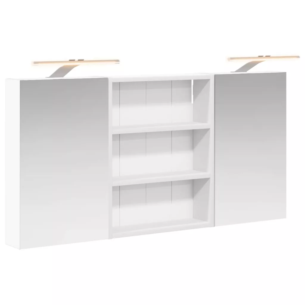 Ez a modern fürdőszobai szekrénykészlet a kortárs stílus megtestesítője, ami ötvözi a dizájnt és a praktikus használhatóságot. Remekül illik a mai fürdőszobákhoz, mint tárolóegység és stílusos dísz. A falra szerelés miatt több hely marad a padlón, míg a legfontosabb dolgokhoz könnyen hozzáférhetsz. A kétirányú tükör és az integrált LED világítás még hangulatosabbá varázsolja a fürdőszobát, friss és rendezett környezetet teremtve a mindennapok rutinjához. Engineered wood construction: Ez a szekrény engineered wood-ból készült, ami szuper stabil és tartós. Az anyag jól bírja a deformációt és a sérüléseket, így hosszú távon megbízható darab marad a fürdőszobádban. Simább felülete elegáns megjelenést ad, amit könnyű karbantartani. Ample storage space: Optimális használatra tervezve a szekrény bőséges tárolóshellyel rendelkezik több polcnak és zsanéros ajtóknak köszönhetően. A praktikus elrendezés segít, hogy a kozmetikumokat könnyen rendszerezhesd, így minden kéznél van. Térkihasználásával csökkenti a rendetlenséget. Innovative two-way mirror: A kétirányú tükör egyedi keveréket kínál a magánéletnek és a láthatóságnak. A külső része hagyományos; viszont a belseje diszkrét megfigyelést tesz lehetővé, amitől kissé elegánsabb lesz a fürdőszobád. Ez a funkció hozzáad egy új dimenziót a modern belső térhez. Efficient LED strip lighting: USB-tápellátású LED csíklámpákkal van felszerelve, ami világos és energiatakarékos világítást biztosít. Ezek növelik a láthatóságot, különösen éjszaka, és békés hangulatot teremtenek. Ideális választás, ha modern világítást keresel. Practical care and maintenance: A szekrény könnyen karbantartható. Hu egy puha, száraz ruhát ajánlott használni, míg a durva vegyszereket érdemes elkerülni, hogy megőrizd az anyag integritását. Ezek az egyszerű utasítások segítenek abban, hogy a szekrény mindig jól nézzen ki a fürdőszobádban. Kérjük, vegye figyelembe, hogy csak tanúsított DC 5V bemenetet használjon. A magasabb feszültség túlmelegedést okozhat, és károsíthatja a készüléket, valamint túlhevülés és tűz kockázatát jelentheti. Ne csatlakoztassa ezt a terméket semmilyen más tápegységhez, mint amit a kézikönyvben, a névtáblán vagy a vidaXL kifejezetten ajánlott. Ezt a készüléket nem használhatják 14 évesnél fiatalabb gyermekek, valamint csökkent fizikai, érzékszervi vagy mentális képességekkel rendelkező személyek, vagy elektronikai eszközök használatában tapasztalatlan vagy tudás nélküli személyek. Az elektromosság veszélyes. A nem megfelelő telepítés, használat vagy módosítás (egyedi alkatrészek cseréje) a készülék károsodásához vezethet, áramütést és veszélyt okozva a felhasználónak. Ne működtesse ezt a terméket robbanásveszélyes atmoszférában, például gyúlékony folyadékok, gázok és por jelenlétében, vagy 50 Celsius foknál magasabb hőmérsékleten. Ne kapcsolja be a terméket, ha a csatlakozó kábel vagy tápegység láthatóan sérült. Ha a lámpa külső hajlékony kábele vagy vezetékje sérült, azt kizárólag a gyártó vagy annak szervizügynöke, illetve hasonló képesítéssel rendelkező személy cserélheti ki, hogy elkerülje a veszélyt. A telepítés és karbantartás alatt kapcsolja ki az áramot. Győződjön meg arról, hogy a fényforrások lehűltek. Ennek a lámpatestnek a fényforrása nem cserélhető; ha a fényforrás elérte élettartamának végét, az egész lámpát ki kell cserélni. Csak belső használatra, ne használja kültéren.