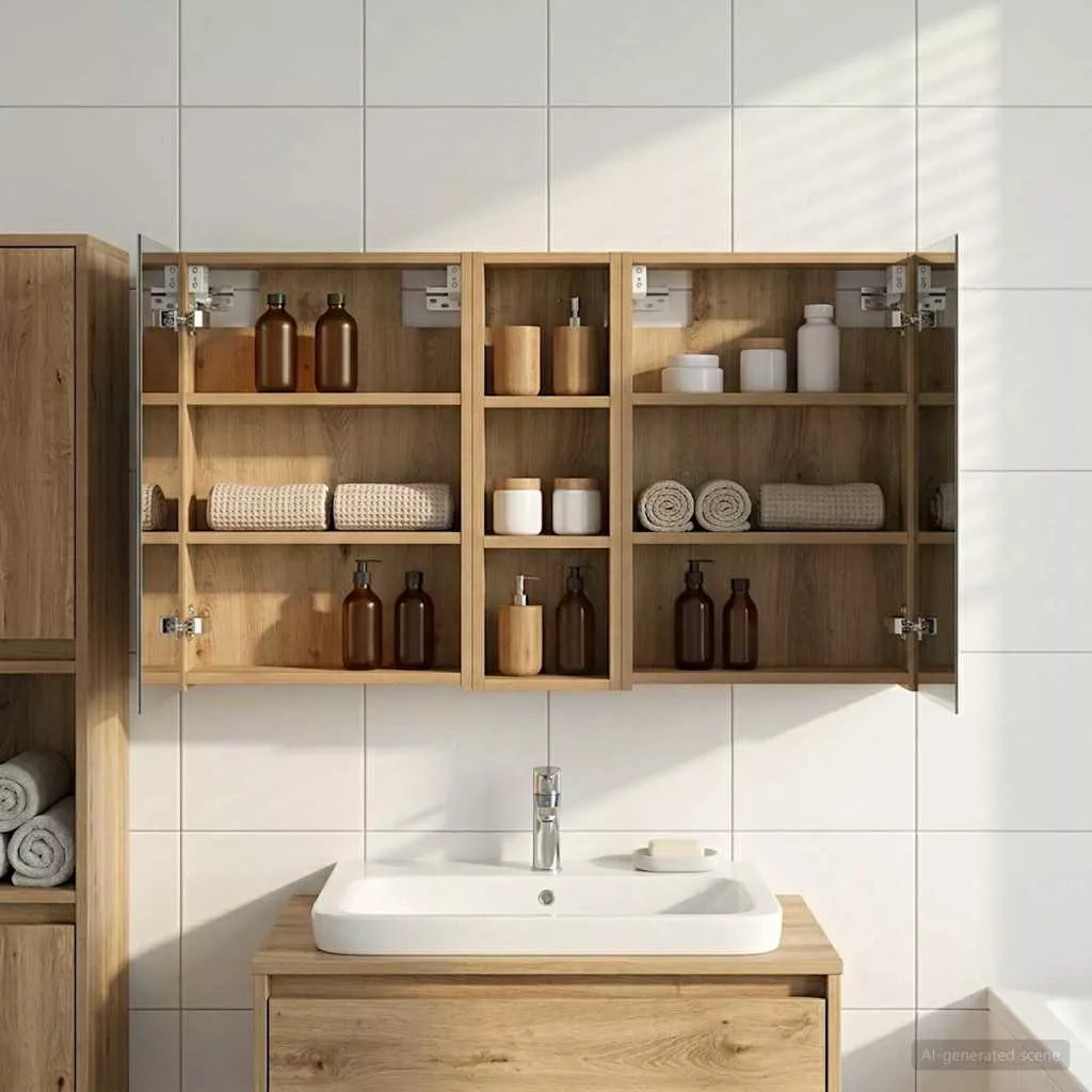 Ez a modern fürdőszobai szekrénykészlet a kortárs stílus megtestesítője, ami ötvözi a dizájnt és a praktikus használhatóságot. Remekül illik a mai fürdőszobákhoz, mint tárolóegység és stílusos dísz. A falra szerelés miatt több hely marad a padlón, míg a legfontosabb dolgokhoz könnyen hozzáférhetsz. A kétirányú tükör és az integrált LED világítás még hangulatosabbá varázsolja a fürdőszobát, friss és rendezett környezetet teremtve a mindennapok rutinjához. Engineered wood construction: Ez a szekrény engineered wood-ból készült, ami szuper stabil és tartós. Az anyag jól bírja a deformációt és a sérüléseket, így hosszú távon megbízható darab marad a fürdőszobádban. Simább felülete elegáns megjelenést ad, amit könnyű karbantartani. Ample storage space: Optimális használatra tervezve a szekrény bőséges tárolóshellyel rendelkezik több polcnak és zsanéros ajtóknak köszönhetően. A praktikus elrendezés segít, hogy a kozmetikumokat könnyen rendszerezhesd, így minden kéznél van. Térkihasználásával csökkenti a rendetlenséget. Innovative two-way mirror: A kétirányú tükör egyedi keveréket kínál a magánéletnek és a láthatóságnak. A külső része hagyományos; viszont a belseje diszkrét megfigyelést tesz lehetővé, amitől kissé elegánsabb lesz a fürdőszobád. Ez a funkció hozzáad egy új dimenziót a modern belső térhez. Efficient LED strip lighting: USB-tápellátású LED csíklámpákkal van felszerelve, ami világos és energiatakarékos világítást biztosít. Ezek növelik a láthatóságot, különösen éjszaka, és békés hangulatot teremtenek. Ideális választás, ha modern világítást keresel. Practical care and maintenance: A szekrény könnyen karbantartható. Hu egy puha, száraz ruhát ajánlott használni, míg a durva vegyszereket érdemes elkerülni, hogy megőrizd az anyag integritását. Ezek az egyszerű utasítások segítenek abban, hogy a szekrény mindig jól nézzen ki a fürdőszobádban.