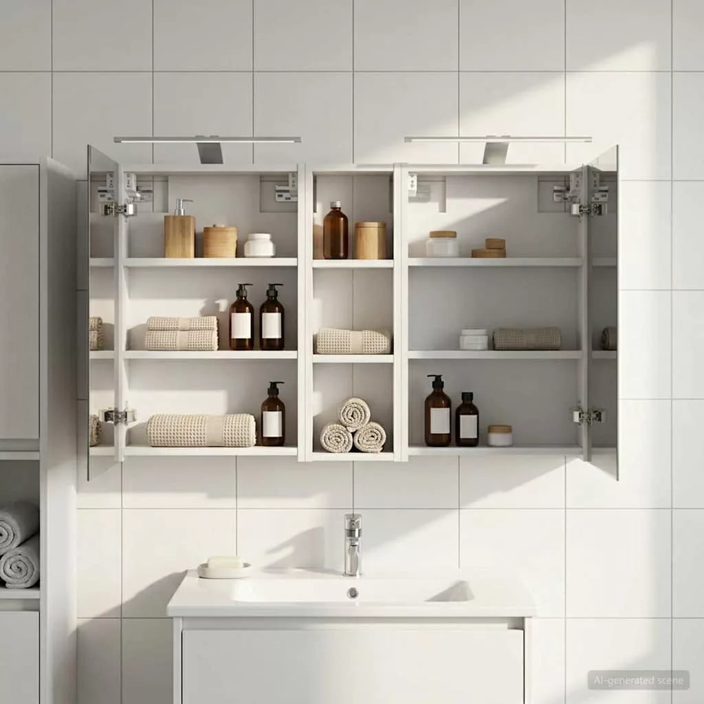 Ez a modern fürdőszobai szekrénykészlet a kortárs stílus megtestesítője, ami ötvözi a dizájnt és a praktikus használhatóságot. Remekül illik a mai fürdőszobákhoz, mint tárolóegység és stílusos dísz. A falra szerelés miatt több hely marad a padlón, míg a legfontosabb dolgokhoz könnyen hozzáférhetsz. A kétirányú tükör és az integrált LED világítás még hangulatosabbá varázsolja a fürdőszobát, friss és rendezett környezetet teremtve a mindennapok rutinjához. Engineered wood construction: Ez a szekrény engineered wood-ból készült, ami szuper stabil és tartós. Az anyag jól bírja a deformációt és a sérüléseket, így hosszú távon megbízható darab marad a fürdőszobádban. Simább felülete elegáns megjelenést ad, amit könnyű karbantartani. Ample storage space: Optimális használatra tervezve a szekrény bőséges tárolóshellyel rendelkezik több polcnak és zsanéros ajtóknak köszönhetően. A praktikus elrendezés segít, hogy a kozmetikumokat könnyen rendszerezhesd, így minden kéznél van. Térkihasználásával csökkenti a rendetlenséget. Innovative two-way mirror: A kétirányú tükör egyedi keveréket kínál a magánéletnek és a láthatóságnak. A külső része hagyományos; viszont a belseje diszkrét megfigyelést tesz lehetővé, amitől kissé elegánsabb lesz a fürdőszobád. Ez a funkció hozzáad egy új dimenziót a modern belső térhez. Efficient LED strip lighting: USB-tápellátású LED csíklámpákkal van felszerelve, ami világos és energiatakarékos világítást biztosít. Ezek növelik a láthatóságot, különösen éjszaka, és békés hangulatot teremtenek. Ideális választás, ha modern világítást keresel. Practical care and maintenance: A szekrény könnyen karbantartható. Hu egy puha, száraz ruhát ajánlott használni, míg a durva vegyszereket érdemes elkerülni, hogy megőrizd az anyag integritását. Ezek az egyszerű utasítások segítenek abban, hogy a szekrény mindig jól nézzen ki a fürdőszobádban. Kérjük, vegye figyelembe, hogy csak tanúsított DC 5V bemenetet használjon. A magasabb feszültség túlmelegedést okozhat, és károsíthatja a készüléket, valamint túlhevülés és tűz kockázatát jelentheti. Ne csatlakoztassa ezt a terméket semmilyen más tápegységhez, mint amit a kézikönyvben, a névtáblán vagy a vidaXL kifejezetten ajánlott. Ezt a készüléket nem használhatják 14 évesnél fiatalabb gyermekek, valamint csökkent fizikai, érzékszervi vagy mentális képességekkel rendelkező személyek, vagy elektronikai eszközök használatában tapasztalatlan vagy tudás nélküli személyek. Az elektromosság veszélyes. A nem megfelelő telepítés, használat vagy módosítás (egyedi alkatrészek cseréje) a készülék károsodásához vezethet, áramütést és veszélyt okozva a felhasználónak. Ne működtesse ezt a terméket robbanásveszélyes atmoszférában, például gyúlékony folyadékok, gázok és por jelenlétében, vagy 50 Celsius foknál magasabb hőmérsékleten. Ne kapcsolja be a terméket, ha a csatlakozó kábel vagy tápegység láthatóan sérült. Ha a lámpa külső hajlékony kábele vagy vezetékje sérült, azt kizárólag a gyártó vagy annak szervizügynöke, illetve hasonló képesítéssel rendelkező személy cserélheti ki, hogy elkerülje a veszélyt. A telepítés és karbantartás alatt kapcsolja ki az áramot. Győződjön meg arról, hogy a fényforrások lehűltek. Ennek a lámpatestnek a fényforrása nem cserélhető; ha a fényforrás elérte élettartamának végét, az egész lámpát ki kell cserélni. Csak belső használatra, ne használja kültéren.
