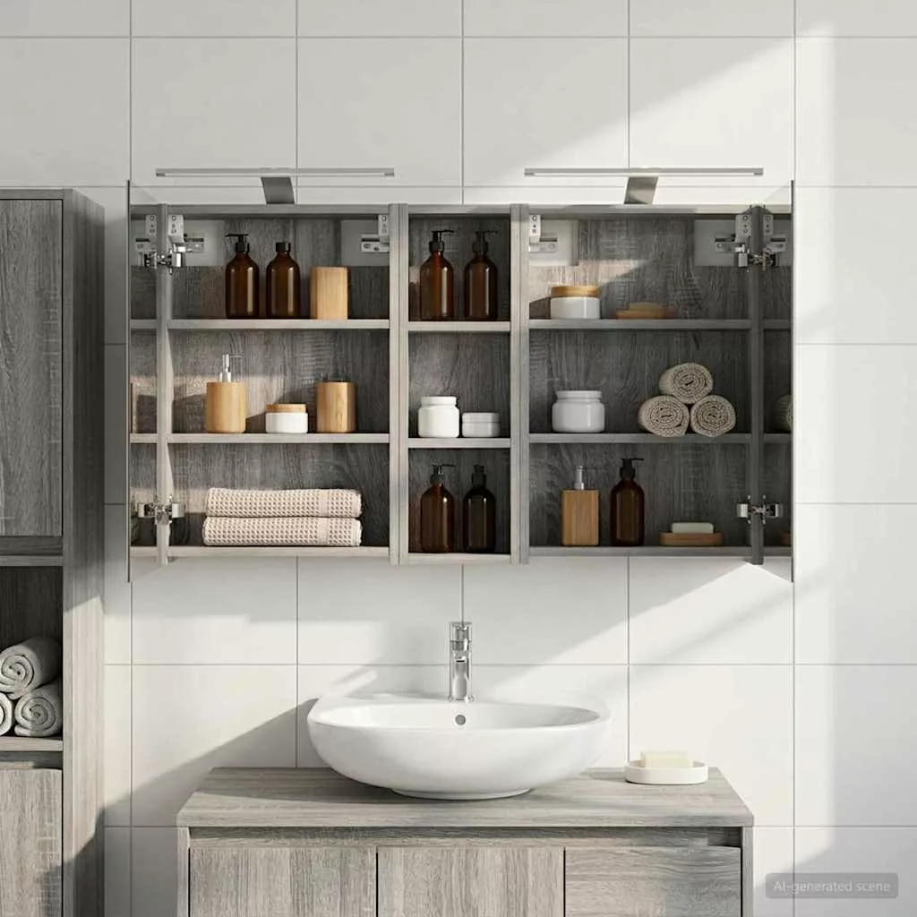Ez a modern fürdőszobai szekrénykészlet a kortárs stílus megtestesítője, ami ötvözi a dizájnt és a praktikus használhatóságot. Remekül illik a mai fürdőszobákhoz, mint tárolóegység és stílusos dísz. A falra szerelés miatt több hely marad a padlón, míg a legfontosabb dolgokhoz könnyen hozzáférhetsz. A kétirányú tükör és az integrált LED világítás még hangulatosabbá varázsolja a fürdőszobát, friss és rendezett környezetet teremtve a mindennapok rutinjához. Engineered wood construction: Ez a szekrény engineered wood-ból készült, ami szuper stabil és tartós. Az anyag jól bírja a deformációt és a sérüléseket, így hosszú távon megbízható darab marad a fürdőszobádban. Simább felülete elegáns megjelenést ad, amit könnyű karbantartani. Ample storage space: Optimális használatra tervezve a szekrény bőséges tárolóshellyel rendelkezik több polcnak és zsanéros ajtóknak köszönhetően. A praktikus elrendezés segít, hogy a kozmetikumokat könnyen rendszerezhesd, így minden kéznél van. Térkihasználásával csökkenti a rendetlenséget. Innovative two-way mirror: A kétirányú tükör egyedi keveréket kínál a magánéletnek és a láthatóságnak. A külső része hagyományos; viszont a belseje diszkrét megfigyelést tesz lehetővé, amitől kissé elegánsabb lesz a fürdőszobád. Ez a funkció hozzáad egy új dimenziót a modern belső térhez. Efficient LED strip lighting: USB-tápellátású LED csíklámpákkal van felszerelve, ami világos és energiatakarékos világítást biztosít. Ezek növelik a láthatóságot, különösen éjszaka, és békés hangulatot teremtenek. Ideális választás, ha modern világítást keresel. Practical care and maintenance: A szekrény könnyen karbantartható. Hu egy puha, száraz ruhát ajánlott használni, míg a durva vegyszereket érdemes elkerülni, hogy megőrizd az anyag integritását. Ezek az egyszerű utasítások segítenek abban, hogy a szekrény mindig jól nézzen ki a fürdőszobádban. Kérjük, vegye figyelembe, hogy csak tanúsított DC 5V bemenetet használjon. A magasabb feszültség túlmelegedést okozhat, és károsíthatja a készüléket, valamint túlhevülés és tűz kockázatát jelentheti. Ne csatlakoztassa ezt a terméket semmilyen más tápegységhez, mint amit a kézikönyvben, a névtáblán vagy a vidaXL kifejezetten ajánlott. Ezt a készüléket nem használhatják 14 évesnél fiatalabb gyermekek, valamint csökkent fizikai, érzékszervi vagy mentális képességekkel rendelkező személyek, vagy elektronikai eszközök használatában tapasztalatlan vagy tudás nélküli személyek. Az elektromosság veszélyes. A nem megfelelő telepítés, használat vagy módosítás (egyedi alkatrészek cseréje) a készülék károsodásához vezethet, áramütést és veszélyt okozva a felhasználónak. Ne működtesse ezt a terméket robbanásveszélyes atmoszférában, például gyúlékony folyadékok, gázok és por jelenlétében, vagy 50 Celsius foknál magasabb hőmérsékleten. Ne kapcsolja be a terméket, ha a csatlakozó kábel vagy tápegység láthatóan sérült. Ha a lámpa külső hajlékony kábele vagy vezetékje sérült, azt kizárólag a gyártó vagy annak szervizügynöke, illetve hasonló képesítéssel rendelkező személy cserélheti ki, hogy elkerülje a veszélyt. A telepítés és karbantartás alatt kapcsolja ki az áramot. Győződjön meg arról, hogy a fényforrások lehűltek. Ennek a lámpatestnek a fényforrása nem cserélhető; ha a fényforrás elérte élettartamának végét, az egész lámpát ki kell cserélni. Csak belső használatra, ne használja kültéren.