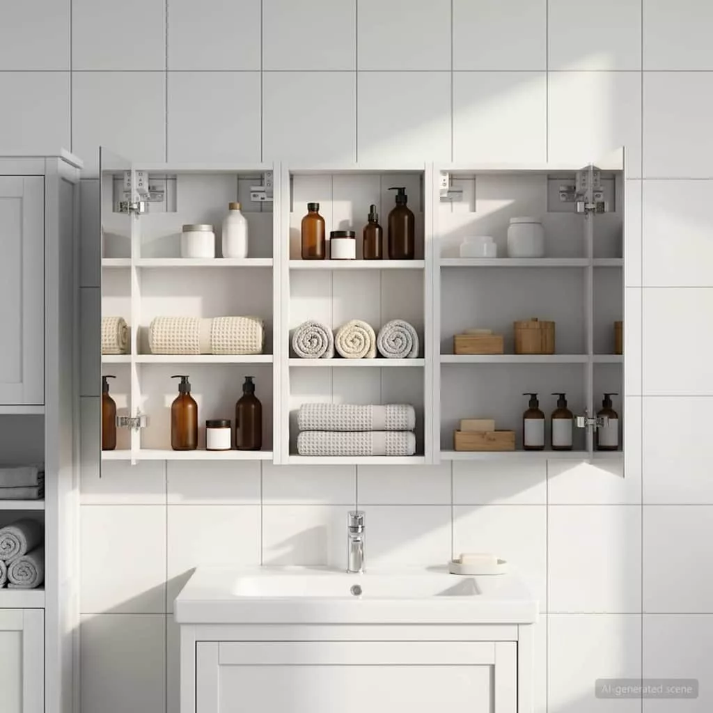 Ez a modern fürdőszobai szekrénykészlet a kortárs stílus megtestesítője, ami ötvözi a dizájnt és a praktikus használhatóságot. Remekül illik a mai fürdőszobákhoz, mint tárolóegység és stílusos dísz. A falra szerelés miatt több hely marad a padlón, míg a legfontosabb dolgokhoz könnyen hozzáférhetsz. A kétirányú tükör és az integrált LED világítás még hangulatosabbá varázsolja a fürdőszobát, friss és rendezett környezetet teremtve a mindennapok rutinjához. Engineered wood construction: Ez a szekrény engineered wood-ból készült, ami szuper stabil és tartós. Az anyag jól bírja a deformációt és a sérüléseket, így hosszú távon megbízható darab marad a fürdőszobádban. Simább felülete elegáns megjelenést ad, amit könnyű karbantartani. Ample storage space: Optimális használatra tervezve a szekrény bőséges tárolóshellyel rendelkezik több polcnak és zsanéros ajtóknak köszönhetően. A praktikus elrendezés segít, hogy a kozmetikumokat könnyen rendszerezhesd, így minden kéznél van. Térkihasználásával csökkenti a rendetlenséget. Innovative two-way mirror: A kétirányú tükör egyedi keveréket kínál a magánéletnek és a láthatóságnak. A külső része hagyományos; viszont a belseje diszkrét megfigyelést tesz lehetővé, amitől kissé elegánsabb lesz a fürdőszobád. Ez a funkció hozzáad egy új dimenziót a modern belső térhez. Efficient LED strip lighting: USB-tápellátású LED csíklámpákkal van felszerelve, ami világos és energiatakarékos világítást biztosít. Ezek növelik a láthatóságot, különösen éjszaka, és békés hangulatot teremtenek. Ideális választás, ha modern világítást keresel. Practical care and maintenance: A szekrény könnyen karbantartható. Hu egy puha, száraz ruhát ajánlott használni, míg a durva vegyszereket érdemes elkerülni, hogy megőrizd az anyag integritását. Ezek az egyszerű utasítások segítenek abban, hogy a szekrény mindig jól nézzen ki a fürdőszobádban.