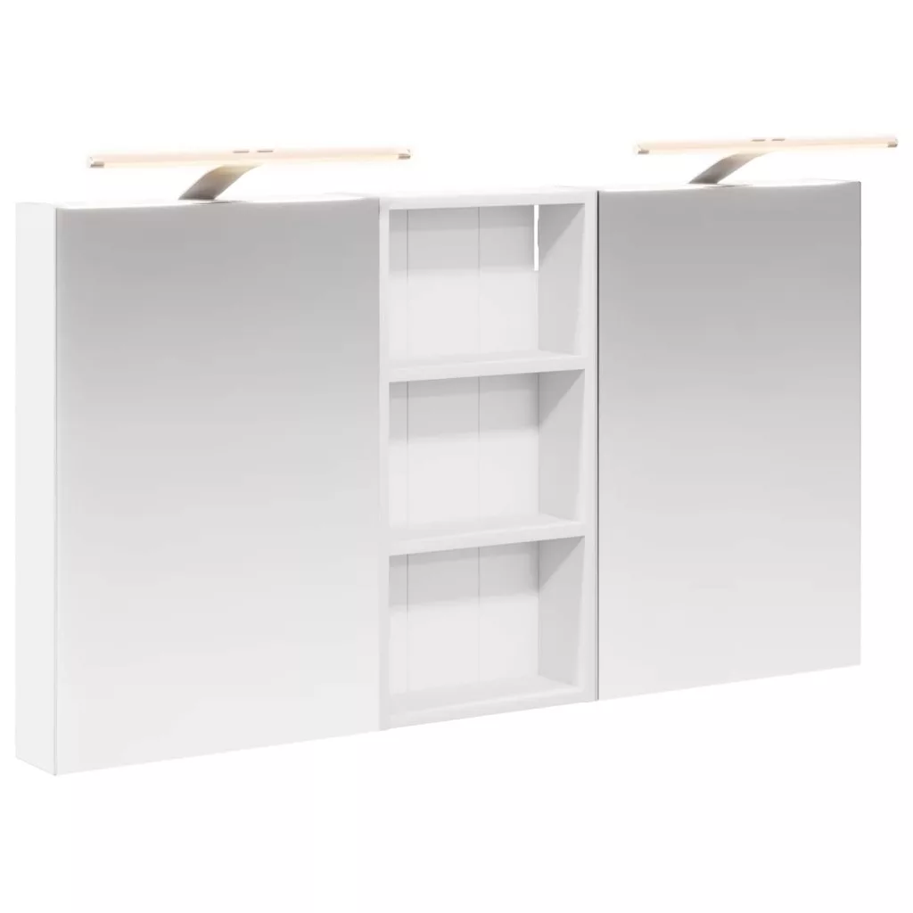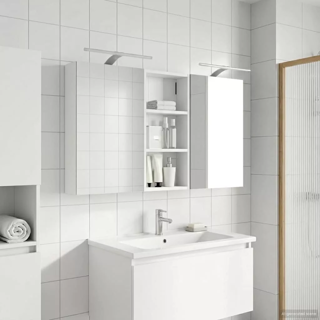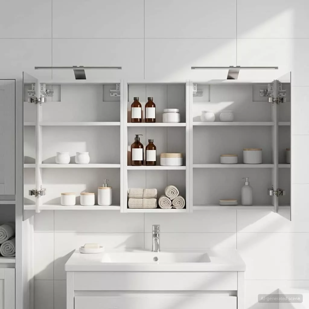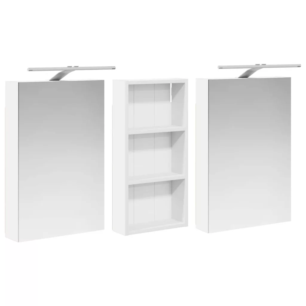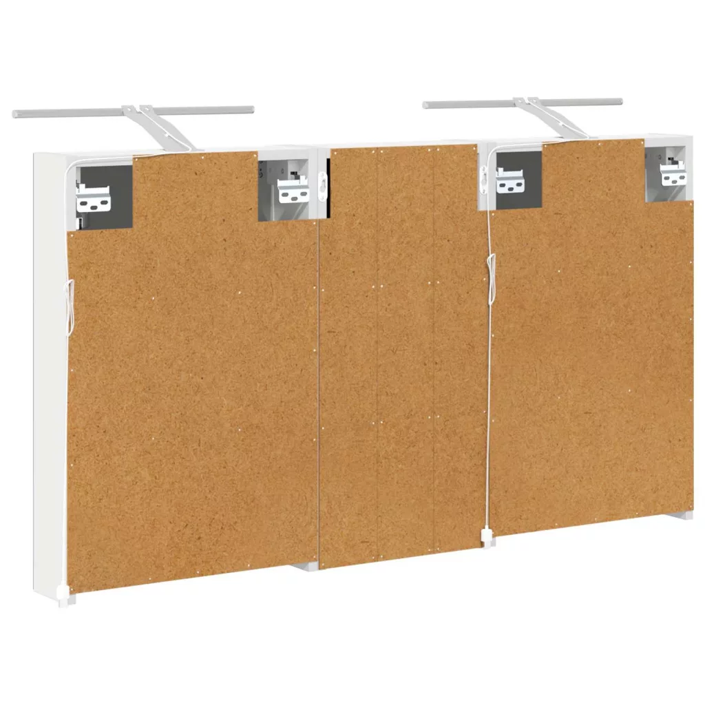 Ez a modern fürdőszobai szekrénykészlet a kortárs stílus megtestesítője, ami ötvözi a dizájnt és a praktikus használhatóságot. Remekül illik a mai fürdőszobákhoz, mint tárolóegység és stílusos dísz. A falra szerelés miatt több hely marad a padlón, míg a legfontosabb dolgokhoz könnyen hozzáférhetsz. A kétirányú tükör és az integrált LED világítás még hangulatosabbá varázsolja a fürdőszobát, friss és rendezett környezetet teremtve a mindennapok rutinjához. Engineered wood construction: Ez a szekrény engineered wood-ból készült, ami szuper stabil és tartós. Az anyag jól bírja a deformációt és a sérüléseket, így hosszú távon megbízható darab marad a fürdőszobádban. Simább felülete elegáns megjelenést ad, amit könnyű karbantartani. Ample storage space: Optimális használatra tervezve a szekrény bőséges tárolóshellyel rendelkezik több polcnak és zsanéros ajtóknak köszönhetően. A praktikus elrendezés segít, hogy a kozmetikumokat könnyen rendszerezhesd, így minden kéznél van. Térkihasználásával csökkenti a rendetlenséget. Innovative two-way mirror: A kétirányú tükör egyedi keveréket kínál a magánéletnek és a láthatóságnak. A külső része hagyományos; viszont a belseje diszkrét megfigyelést tesz lehetővé, amitől kissé elegánsabb lesz a fürdőszobád. Ez a funkció hozzáad egy új dimenziót a modern belső térhez. Efficient LED strip lighting: USB-tápellátású LED csíklámpákkal van felszerelve, ami világos és energiatakarékos világítást biztosít. Ezek növelik a láthatóságot, különösen éjszaka, és békés hangulatot teremtenek. Ideális választás, ha modern világítást keresel. Practical care and maintenance: A szekrény könnyen karbantartható. Hu egy puha, száraz ruhát ajánlott használni, míg a durva vegyszereket érdemes elkerülni, hogy megőrizd az anyag integritását. Ezek az egyszerű utasítások segítenek abban, hogy a szekrény mindig jól nézzen ki a fürdőszobádban. Kérjük, vegye figyelembe, hogy csak tanúsított DC 5V bemenetet használjon. A magasabb feszültség túlmelegedést okozhat, és károsíthatja a készüléket, valamint túlhevülés és tűz kockázatát jelentheti. Ne csatlakoztassa ezt a terméket semmilyen más tápegységhez, mint amit a kézikönyvben, a névtáblán vagy a vidaXL kifejezetten ajánlott. Ezt a készüléket nem használhatják 14 évesnél fiatalabb gyermekek, valamint csökkent fizikai, érzékszervi vagy mentális képességekkel rendelkező személyek, vagy elektronikai eszközök használatában tapasztalatlan vagy tudás nélküli személyek. Az elektromosság veszélyes. A nem megfelelő telepítés, használat vagy módosítás (egyedi alkatrészek cseréje) a készülék károsodásához vezethet, áramütést és veszélyt okozva a felhasználónak. Ne működtesse ezt a terméket robbanásveszélyes atmoszférában, például gyúlékony folyadékok, gázok és por jelenlétében, vagy 50 Celsius foknál magasabb hőmérsékleten. Ne kapcsolja be a terméket, ha a csatlakozó kábel vagy tápegység láthatóan sérült. Ha a lámpa külső hajlékony kábele vagy vezetékje sérült, azt kizárólag a gyártó vagy annak szervizügynöke, illetve hasonló képesítéssel rendelkező személy cserélheti ki, hogy elkerülje a veszélyt. A telepítés és karbantartás alatt kapcsolja ki az áramot. Győződjön meg arról, hogy a fényforrások lehűltek. Ennek a lámpatestnek a fényforrása nem cserélhető; ha a fényforrás elérte élettartamának végét, az egész lámpát ki kell cserélni. Csak belső használatra, ne használja kültéren.