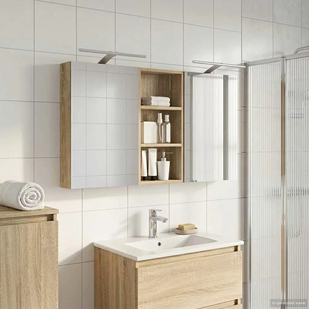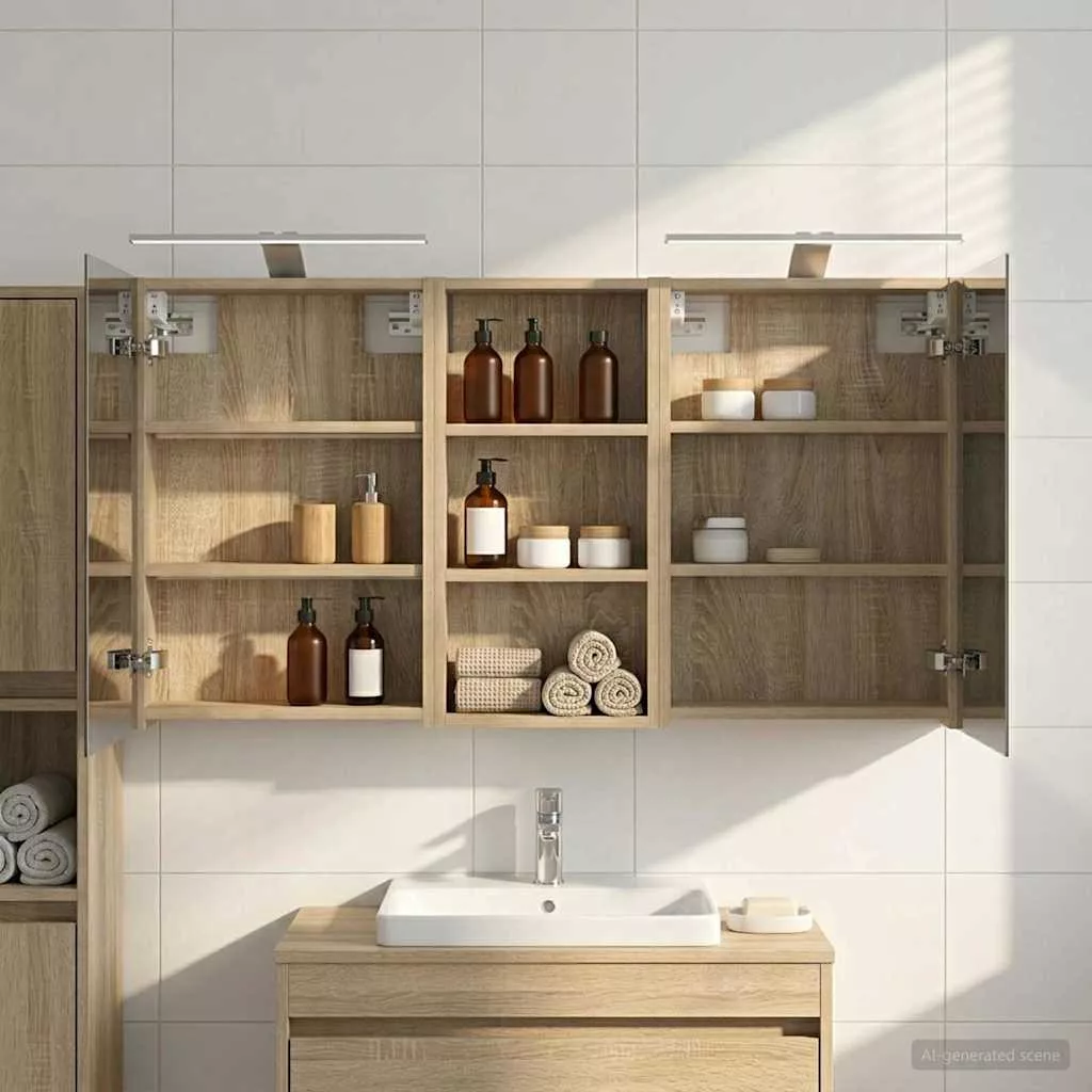 Ez a modern fürdőszobai szekrénykészlet a kortárs stílus megtestesítője, ami ötvözi a dizájnt és a praktikus használhatóságot. Remekül illik a mai fürdőszobákhoz, mint tárolóegység és stílusos dísz. A falra szerelés miatt több hely marad a padlón, míg a legfontosabb dolgokhoz könnyen hozzáférhetsz. A kétirányú tükör és az integrált LED világítás még hangulatosabbá varázsolja a fürdőszobát, friss és rendezett környezetet teremtve a mindennapok rutinjához. Engineered wood construction: Ez a szekrény engineered wood-ból készült, ami szuper stabil és tartós. Az anyag jól bírja a deformációt és a sérüléseket, így hosszú távon megbízható darab marad a fürdőszobádban. Simább felülete elegáns megjelenést ad, amit könnyű karbantartani. Ample storage space: Optimális használatra tervezve a szekrény bőséges tárolóshellyel rendelkezik több polcnak és zsanéros ajtóknak köszönhetően. A praktikus elrendezés segít, hogy a kozmetikumokat könnyen rendszerezhesd, így minden kéznél van. Térkihasználásával csökkenti a rendetlenséget. Innovative two-way mirror: A kétirányú tükör egyedi keveréket kínál a magánéletnek és a láthatóságnak. A külső része hagyományos; viszont a belseje diszkrét megfigyelést tesz lehetővé, amitől kissé elegánsabb lesz a fürdőszobád. Ez a funkció hozzáad egy új dimenziót a modern belső térhez. Efficient LED strip lighting: USB-tápellátású LED csíklámpákkal van felszerelve, ami világos és energiatakarékos világítást biztosít. Ezek növelik a láthatóságot, különösen éjszaka, és békés hangulatot teremtenek. Ideális választás, ha modern világítást keresel. Practical care and maintenance: A szekrény könnyen karbantartható. Hu egy puha, száraz ruhát ajánlott használni, míg a durva vegyszereket érdemes elkerülni, hogy megőrizd az anyag integritását. Ezek az egyszerű utasítások segítenek abban, hogy a szekrény mindig jól nézzen ki a fürdőszobádban. Kérjük, vegye figyelembe, hogy csak tanúsított DC 5V bemenetet használjon. A magasabb feszültség túlmelegedést okozhat, és károsíthatja a készüléket, valamint túlhevülés és tűz kockázatát jelentheti. Ne csatlakoztassa ezt a terméket semmilyen más tápegységhez, mint amit a kézikönyvben, a névtáblán vagy a vidaXL kifejezetten ajánlott. Ezt a készüléket nem használhatják 14 évesnél fiatalabb gyermekek, valamint csökkent fizikai, érzékszervi vagy mentális képességekkel rendelkező személyek, vagy elektronikai eszközök használatában tapasztalatlan vagy tudás nélküli személyek. Az elektromosság veszélyes. A nem megfelelő telepítés, használat vagy módosítás (egyedi alkatrészek cseréje) a készülék károsodásához vezethet, áramütést és veszélyt okozva a felhasználónak. Ne működtesse ezt a terméket robbanásveszélyes atmoszférában, például gyúlékony folyadékok, gázok és por jelenlétében, vagy 50 Celsius foknál magasabb hőmérsékleten. Ne kapcsolja be a terméket, ha a csatlakozó kábel vagy tápegység láthatóan sérült. Ha a lámpa külső hajlékony kábele vagy vezetékje sérült, azt kizárólag a gyártó vagy annak szervizügynöke, illetve hasonló képesítéssel rendelkező személy cserélheti ki, hogy elkerülje a veszélyt. A telepítés és karbantartás alatt kapcsolja ki az áramot. Győződjön meg arról, hogy a fényforrások lehűltek. Ennek a lámpatestnek a fényforrása nem cserélhető; ha a fényforrás elérte élettartamának végét, az egész lámpát ki kell cserélni. Csak belső használatra, ne használja kültéren.