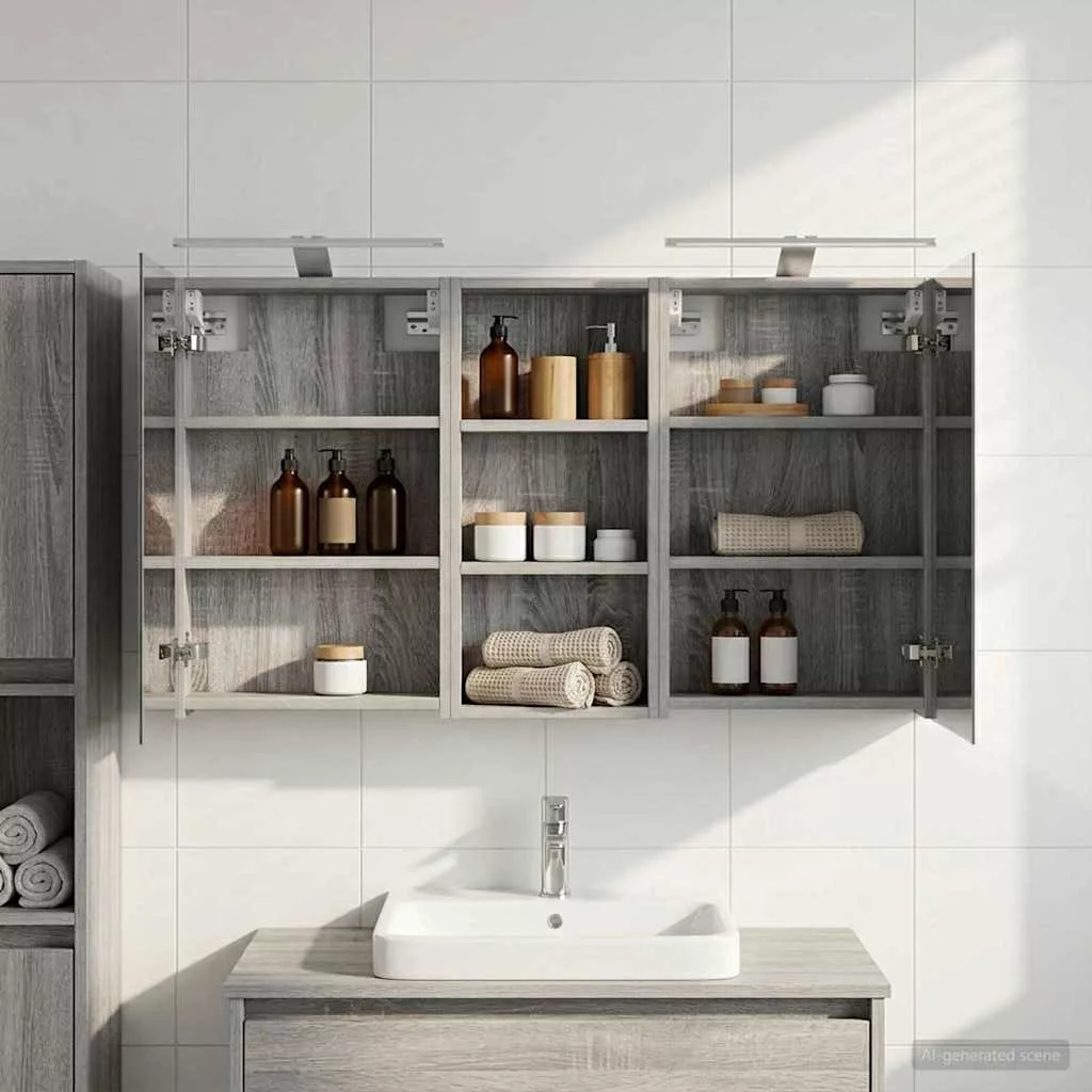 Ez a modern fürdőszobai szekrénykészlet a kortárs stílus megtestesítője, ami ötvözi a dizájnt és a praktikus használhatóságot. Remekül illik a mai fürdőszobákhoz, mint tárolóegység és stílusos dísz. A falra szerelés miatt több hely marad a padlón, míg a legfontosabb dolgokhoz könnyen hozzáférhetsz. A kétirányú tükör és az integrált LED világítás még hangulatosabbá varázsolja a fürdőszobát, friss és rendezett környezetet teremtve a mindennapok rutinjához. Engineered wood construction: Ez a szekrény engineered wood-ból készült, ami szuper stabil és tartós. Az anyag jól bírja a deformációt és a sérüléseket, így hosszú távon megbízható darab marad a fürdőszobádban. Simább felülete elegáns megjelenést ad, amit könnyű karbantartani. Ample storage space: Optimális használatra tervezve a szekrény bőséges tárolóshellyel rendelkezik több polcnak és zsanéros ajtóknak köszönhetően. A praktikus elrendezés segít, hogy a kozmetikumokat könnyen rendszerezhesd, így minden kéznél van. Térkihasználásával csökkenti a rendetlenséget. Innovative two-way mirror: A kétirányú tükör egyedi keveréket kínál a magánéletnek és a láthatóságnak. A külső része hagyományos; viszont a belseje diszkrét megfigyelést tesz lehetővé, amitől kissé elegánsabb lesz a fürdőszobád. Ez a funkció hozzáad egy új dimenziót a modern belső térhez. Efficient LED strip lighting: USB-tápellátású LED csíklámpákkal van felszerelve, ami világos és energiatakarékos világítást biztosít. Ezek növelik a láthatóságot, különösen éjszaka, és békés hangulatot teremtenek. Ideális választás, ha modern világítást keresel. Practical care and maintenance: A szekrény könnyen karbantartható. Hu egy puha, száraz ruhát ajánlott használni, míg a durva vegyszereket érdemes elkerülni, hogy megőrizd az anyag integritását. Ezek az egyszerű utasítások segítenek abban, hogy a szekrény mindig jól nézzen ki a fürdőszobádban. Kérjük, vegye figyelembe, hogy csak tanúsított DC 5V bemenetet használjon. A magasabb feszültség túlmelegedést okozhat, és károsíthatja a készüléket, valamint túlhevülés és tűz kockázatát jelentheti. Ne csatlakoztassa ezt a terméket semmilyen más tápegységhez, mint amit a kézikönyvben, a névtáblán vagy a vidaXL kifejezetten ajánlott. Ezt a készüléket nem használhatják 14 évesnél fiatalabb gyermekek, valamint csökkent fizikai, érzékszervi vagy mentális képességekkel rendelkező személyek, vagy elektronikai eszközök használatában tapasztalatlan vagy tudás nélküli személyek. Az elektromosság veszélyes. A nem megfelelő telepítés, használat vagy módosítás (egyedi alkatrészek cseréje) a készülék károsodásához vezethet, áramütést és veszélyt okozva a felhasználónak. Ne működtesse ezt a terméket robbanásveszélyes atmoszférában, például gyúlékony folyadékok, gázok és por jelenlétében, vagy 50 Celsius foknál magasabb hőmérsékleten. Ne kapcsolja be a terméket, ha a csatlakozó kábel vagy tápegység láthatóan sérült. Ha a lámpa külső hajlékony kábele vagy vezetékje sérült, azt kizárólag a gyártó vagy annak szervizügynöke, illetve hasonló képesítéssel rendelkező személy cserélheti ki, hogy elkerülje a veszélyt. A telepítés és karbantartás alatt kapcsolja ki az áramot. Győződjön meg arról, hogy a fényforrások lehűltek. Ennek a lámpatestnek a fényforrása nem cserélhető; ha a fényforrás elérte élettartamának végét, az egész lámpát ki kell cserélni. Csak belső használatra, ne használja kültéren.