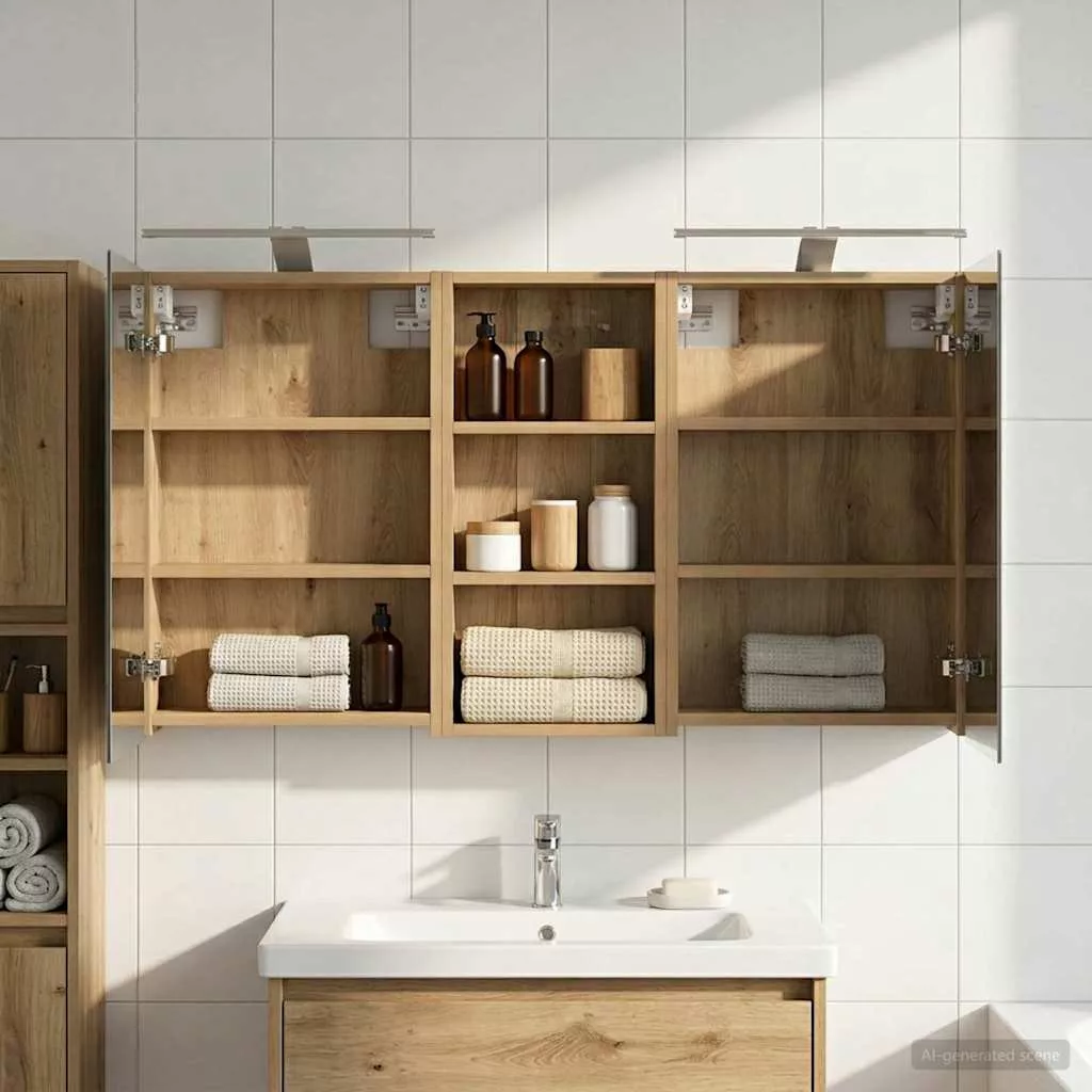 Ez a modern fürdőszobai szekrénykészlet a kortárs stílus megtestesítője, ami ötvözi a dizájnt és a praktikus használhatóságot. Remekül illik a mai fürdőszobákhoz, mint tárolóegység és stílusos dísz. A falra szerelés miatt több hely marad a padlón, míg a legfontosabb dolgokhoz könnyen hozzáférhetsz. A kétirányú tükör és az integrált LED világítás még hangulatosabbá varázsolja a fürdőszobát, friss és rendezett környezetet teremtve a mindennapok rutinjához. Engineered wood construction: Ez a szekrény engineered wood-ból készült, ami szuper stabil és tartós. Az anyag jól bírja a deformációt és a sérüléseket, így hosszú távon megbízható darab marad a fürdőszobádban. Simább felülete elegáns megjelenést ad, amit könnyű karbantartani. Ample storage space: Optimális használatra tervezve a szekrény bőséges tárolóshellyel rendelkezik több polcnak és zsanéros ajtóknak köszönhetően. A praktikus elrendezés segít, hogy a kozmetikumokat könnyen rendszerezhesd, így minden kéznél van. Térkihasználásával csökkenti a rendetlenséget. Innovative two-way mirror: A kétirányú tükör egyedi keveréket kínál a magánéletnek és a láthatóságnak. A külső része hagyományos; viszont a belseje diszkrét megfigyelést tesz lehetővé, amitől kissé elegánsabb lesz a fürdőszobád. Ez a funkció hozzáad egy új dimenziót a modern belső térhez. Efficient LED strip lighting: USB-tápellátású LED csíklámpákkal van felszerelve, ami világos és energiatakarékos világítást biztosít. Ezek növelik a láthatóságot, különösen éjszaka, és békés hangulatot teremtenek. Ideális választás, ha modern világítást keresel. Practical care and maintenance: A szekrény könnyen karbantartható. Hu egy puha, száraz ruhát ajánlott használni, míg a durva vegyszereket érdemes elkerülni, hogy megőrizd az anyag integritását. Ezek az egyszerű utasítások segítenek abban, hogy a szekrény mindig jól nézzen ki a fürdőszobádban. Kérjük, vegye figyelembe, hogy csak tanúsított DC 5V bemenetet használjon. A magasabb feszültség túlmelegedést okozhat, és károsíthatja a készüléket, valamint túlhevülés és tűz kockázatát jelentheti. Ne csatlakoztassa ezt a terméket semmilyen más tápegységhez, mint amit a kézikönyvben, a névtáblán vagy a vidaXL kifejezetten ajánlott. Ezt a készüléket nem használhatják 14 évesnél fiatalabb gyermekek, valamint csökkent fizikai, érzékszervi vagy mentális képességekkel rendelkező személyek, vagy elektronikai eszközök használatában tapasztalatlan vagy tudás nélküli személyek. Az elektromosság veszélyes. A nem megfelelő telepítés, használat vagy módosítás (egyedi alkatrészek cseréje) a készülék károsodásához vezethet, áramütést és veszélyt okozva a felhasználónak. Ne működtesse ezt a terméket robbanásveszélyes atmoszférában, például gyúlékony folyadékok, gázok és por jelenlétében, vagy 50 Celsius foknál magasabb hőmérsékleten. Ne kapcsolja be a terméket, ha a csatlakozó kábel vagy tápegység láthatóan sérült. Ha a lámpa külső hajlékony kábele vagy vezetékje sérült, azt kizárólag a gyártó vagy annak szervizügynöke, illetve hasonló képesítéssel rendelkező személy cserélheti ki, hogy elkerülje a veszélyt. A telepítés és karbantartás alatt kapcsolja ki az áramot. Győződjön meg arról, hogy a fényforrások lehűltek. Ennek a lámpatestnek a fényforrása nem cserélhető; ha a fényforrás elérte élettartamának végét, az egész lámpát ki kell cserélni. Csak belső használatra, ne használja kültéren.