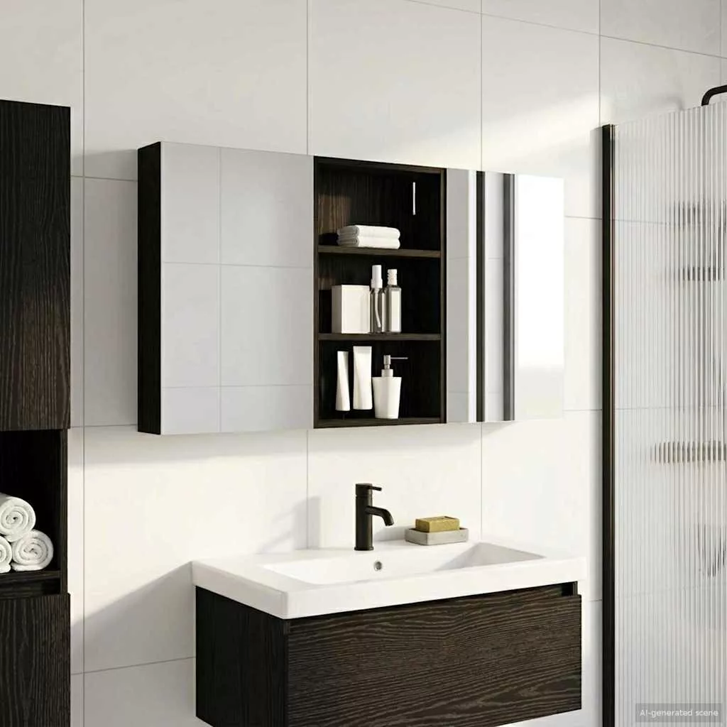 Ez a modern fürdőszobai szekrénykészlet a kortárs stílus megtestesítője, ami ötvözi a dizájnt és a praktikus használhatóságot. Remekül illik a mai fürdőszobákhoz, mint tárolóegység és stílusos dísz. A falra szerelés miatt több hely marad a padlón, míg a legfontosabb dolgokhoz könnyen hozzáférhetsz. A kétirányú tükör és az integrált LED világítás még hangulatosabbá varázsolja a fürdőszobát, friss és rendezett környezetet teremtve a mindennapok rutinjához. Engineered wood construction: Ez a szekrény engineered wood-ból készült, ami szuper stabil és tartós. Az anyag jól bírja a deformációt és a sérüléseket, így hosszú távon megbízható darab marad a fürdőszobádban. Simább felülete elegáns megjelenést ad, amit könnyű karbantartani. Ample storage space: Optimális használatra tervezve a szekrény bőséges tárolóshellyel rendelkezik több polcnak és zsanéros ajtóknak köszönhetően. A praktikus elrendezés segít, hogy a kozmetikumokat könnyen rendszerezhesd, így minden kéznél van. Térkihasználásával csökkenti a rendetlenséget. Innovative two-way mirror: A kétirányú tükör egyedi keveréket kínál a magánéletnek és a láthatóságnak. A külső része hagyományos; viszont a belseje diszkrét megfigyelést tesz lehetővé, amitől kissé elegánsabb lesz a fürdőszobád. Ez a funkció hozzáad egy új dimenziót a modern belső térhez. Efficient LED strip lighting: USB-tápellátású LED csíklámpákkal van felszerelve, ami világos és energiatakarékos világítást biztosít. Ezek növelik a láthatóságot, különösen éjszaka, és békés hangulatot teremtenek. Ideális választás, ha modern világítást keresel. Practical care and maintenance: A szekrény könnyen karbantartható. Hu egy puha, száraz ruhát ajánlott használni, míg a durva vegyszereket érdemes elkerülni, hogy megőrizd az anyag integritását. Ezek az egyszerű utasítások segítenek abban, hogy a szekrény mindig jól nézzen ki a fürdőszobádban.