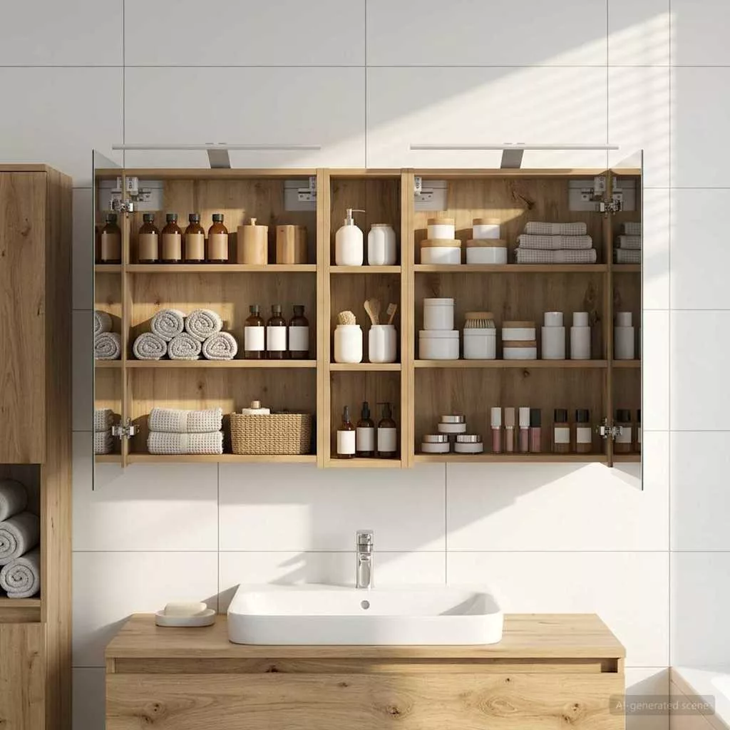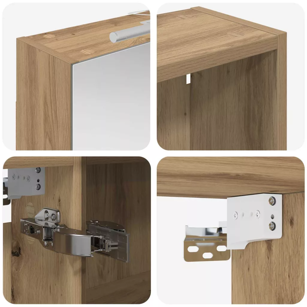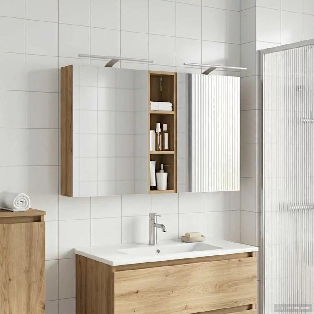 Ez a modern fürdőszobai szekrénykészlet a kortárs stílus megtestesítője, ami ötvözi a dizájnt és a praktikus használhatóságot. Remekül illik a mai fürdőszobákhoz, mint tárolóegység és stílusos dísz. A falra szerelés miatt több hely marad a padlón, míg a legfontosabb dolgokhoz könnyen hozzáférhetsz. A kétirányú tükör és az integrált LED világítás még hangulatosabbá varázsolja a fürdőszobát, friss és rendezett környezetet teremtve a mindennapok rutinjához. Engineered wood construction: Ez a szekrény engineered wood-ból készült, ami szuper stabil és tartós. Az anyag jól bírja a deformációt és a sérüléseket, így hosszú távon megbízható darab marad a fürdőszobádban. Simább felülete elegáns megjelenést ad, amit könnyű karbantartani. Ample storage space: Optimális használatra tervezve a szekrény bőséges tárolóshellyel rendelkezik több polcnak és zsanéros ajtóknak köszönhetően. A praktikus elrendezés segít, hogy a kozmetikumokat könnyen rendszerezhesd, így minden kéznél van. Térkihasználásával csökkenti a rendetlenséget. Innovative two-way mirror: A kétirányú tükör egyedi keveréket kínál a magánéletnek és a láthatóságnak. A külső része hagyományos; viszont a belseje diszkrét megfigyelést tesz lehetővé, amitől kissé elegánsabb lesz a fürdőszobád. Ez a funkció hozzáad egy új dimenziót a modern belső térhez. Efficient LED strip lighting: USB-tápellátású LED csíklámpákkal van felszerelve, ami világos és energiatakarékos világítást biztosít. Ezek növelik a láthatóságot, különösen éjszaka, és békés hangulatot teremtenek. Ideális választás, ha modern világítást keresel. Practical care and maintenance: A szekrény könnyen karbantartható. Hu egy puha, száraz ruhát ajánlott használni, míg a durva vegyszereket érdemes elkerülni, hogy megőrizd az anyag integritását. Ezek az egyszerű utasítások segítenek abban, hogy a szekrény mindig jól nézzen ki a fürdőszobádban. Kérjük, vegye figyelembe, hogy csak tanúsított DC 5V bemenetet használjon. A magasabb feszültség túlmelegedést okozhat, és károsíthatja a készüléket, valamint túlhevülés és tűz kockázatát jelentheti. Ne csatlakoztassa ezt a terméket semmilyen más tápegységhez, mint amit a kézikönyvben, a névtáblán vagy a vidaXL kifejezetten ajánlott. Ezt a készüléket nem használhatják 14 évesnél fiatalabb gyermekek, valamint csökkent fizikai, érzékszervi vagy mentális képességekkel rendelkező személyek, vagy elektronikai eszközök használatában tapasztalatlan vagy tudás nélküli személyek. Az elektromosság veszélyes. A nem megfelelő telepítés, használat vagy módosítás (egyedi alkatrészek cseréje) a készülék károsodásához vezethet, áramütést és veszélyt okozva a felhasználónak. Ne működtesse ezt a terméket robbanásveszélyes atmoszférában, például gyúlékony folyadékok, gázok és por jelenlétében, vagy 50 Celsius foknál magasabb hőmérsékleten. Ne kapcsolja be a terméket, ha a csatlakozó kábel vagy tápegység láthatóan sérült. Ha a lámpa külső hajlékony kábele vagy vezetékje sérült, azt kizárólag a gyártó vagy annak szervizügynöke, illetve hasonló képesítéssel rendelkező személy cserélheti ki, hogy elkerülje a veszélyt. A telepítés és karbantartás alatt kapcsolja ki az áramot. Győződjön meg arról, hogy a fényforrások lehűltek. Ennek a lámpatestnek a fényforrása nem cserélhető; ha a fényforrás elérte élettartamának végét, az egész lámpát ki kell cserélni. Csak belső használatra, ne használja kültéren.