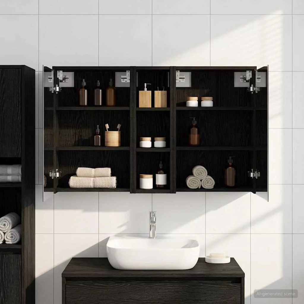 Ez a Fürdőszoba Szekrény Szett a modern fürdőszobák stílusos és praktikus megoldása. Az összeszerelt fa és a letisztult vonalak kombinációja egy különleges kétirányú tükröt rejteget, ami nemcsak optikailag növeli a teret, hanem izgalmat is csempész a fürdőszobába. Ez a szett tökéletes választás otthoni tulajdonosoknak és profi dizájnereknek egyaránt, hiszen nemcsak praktikus tárolást biztosít, de a minimalista dizájnnal és erős LED világítással feldobja a fürdőszoba hangulatát. A forma és funkció tökéletes párosítása! Összeszerelt fa felépítés: Ez a fürdőszoba szekrény szuper tartós és évekig bírja, ráadásul könnyen tisztítható, ami jól jön a nedves környezetben is. Kétfunkciós ajtók: A zsanéros üvegből készült ajtók simán működnek és elegáns átlátszóságot biztosítanak. Ezen belül rengeteg hely van a piperecikkeknek, így rendben tarthatod a fürdőszobádat. Innovatív világítás: Az állítható LED világítás gondoskodik róla, hogy mindig a legjobban láss, amikor a szépségápolásra kerül a sor, és emellett feldobja a fürdőszoba hangulatát is. USB-n keresztül működik, a lámpák nemcsak tárolásra jók, de jól is néznek ki. Kétirányú tükör: A különleges kétirányú tükör mélységet és eleganciát ad a szekrénynek. Perfect a privát fürdőszobákhoz, de ugyanolyan jól használható a sminkelés vagy borotválkozás során. Egyszerű falra szerelés: A modern lakásokhoz tervezve, a szekrény falra szerelhető, így helyet spórol és elegáns megjelenést ad. Ez a telepítési módszer bármilyen méretű fürdőszobába beleillik.