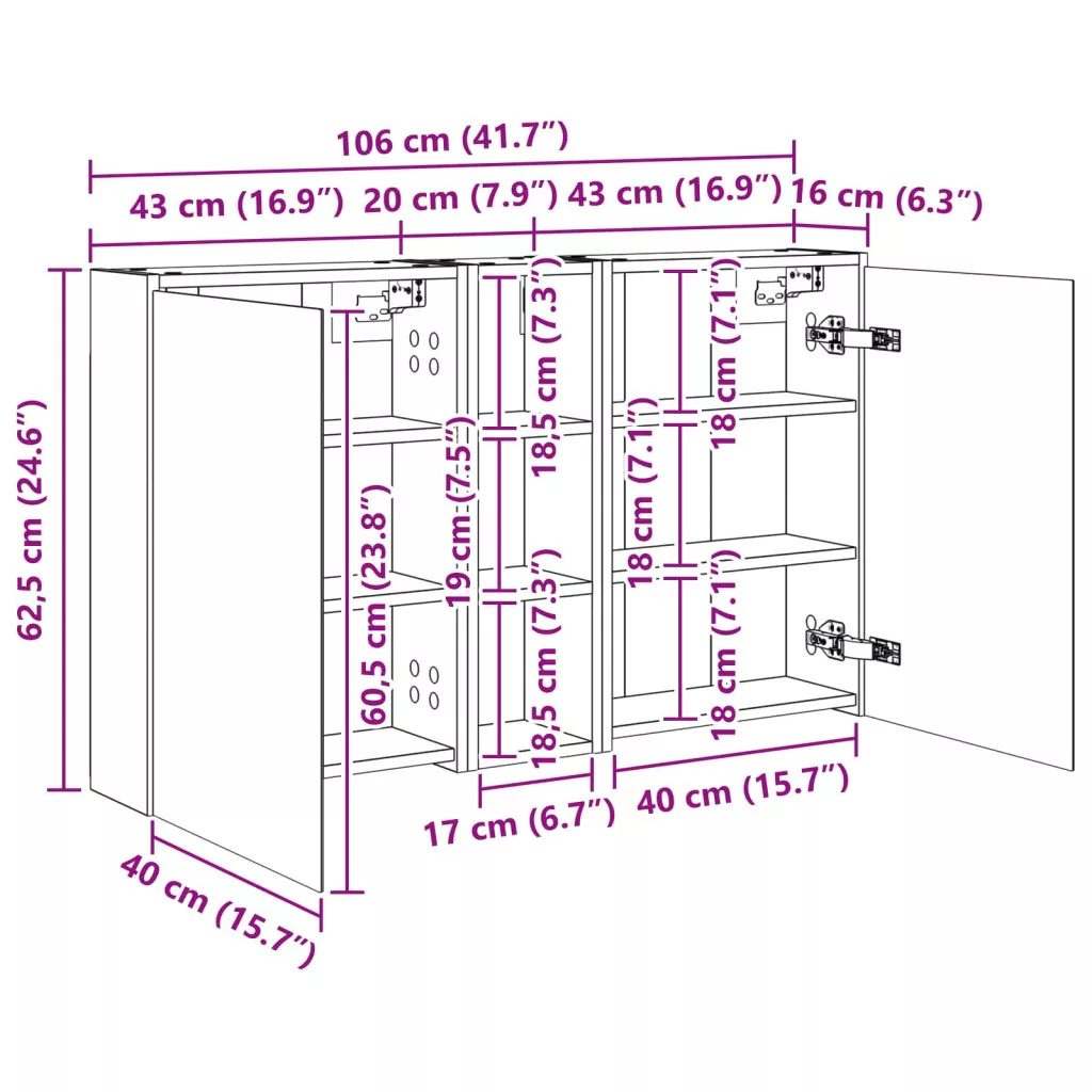106 x 16 x 62,5 cm