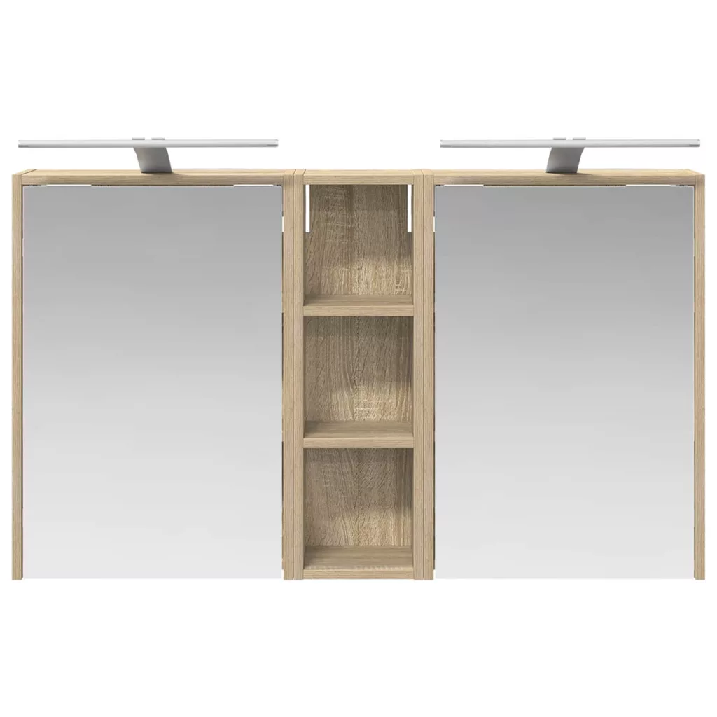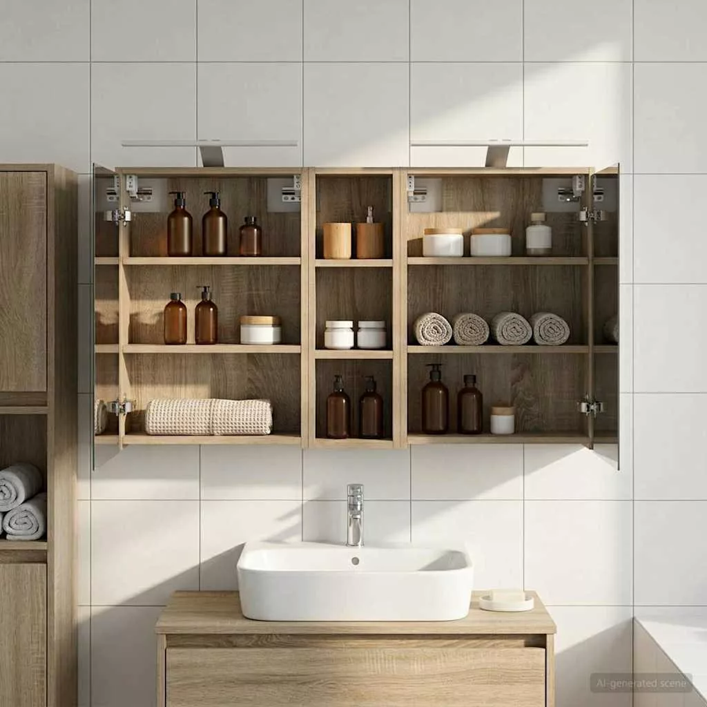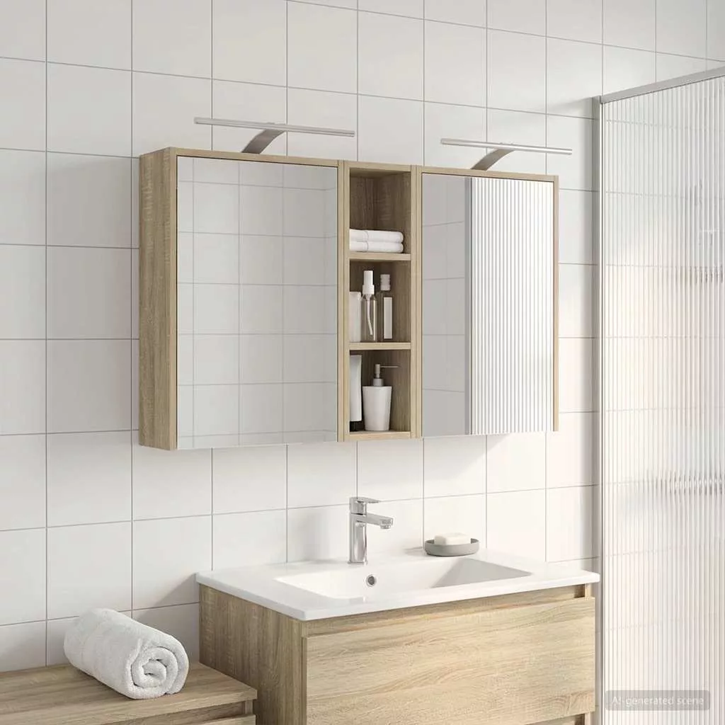 Ez a Fürdőszoba Szekrény Szett a modern fürdőszobák stílusos és praktikus megoldása. Az összeszerelt fa és a letisztult vonalak kombinációja egy különleges kétirányú tükröt rejteget, ami nemcsak optikailag növeli a teret, hanem izgalmat is csempész a fürdőszobába. Ez a szett tökéletes választás otthoni tulajdonosoknak és profi dizájnereknek egyaránt, hiszen nemcsak praktikus tárolást biztosít, de a minimalista dizájnnal és erős LED világítással feldobja a fürdőszoba hangulatát. A forma és funkció tökéletes párosítása! Összeszerelt fa felépítés: Ez a fürdőszoba szekrény szuper tartós és évekig bírja, ráadásul könnyen tisztítható, ami jól jön a nedves környezetben is. Kétfunkciós ajtók: A zsanéros üvegből készült ajtók simán működnek és elegáns átlátszóságot biztosítanak. Ezen belül rengeteg hely van a piperecikkeknek, így rendben tarthatod a fürdőszobádat. Innovatív világítás: Az állítható LED világítás gondoskodik róla, hogy mindig a legjobban láss, amikor a szépségápolásra kerül a sor, és emellett feldobja a fürdőszoba hangulatát is. USB-n keresztül működik, a lámpák nemcsak tárolásra jók, de jól is néznek ki. Kétirányú tükör: A különleges kétirányú tükör mélységet és eleganciát ad a szekrénynek. Perfect a privát fürdőszobákhoz, de ugyanolyan jól használható a sminkelés vagy borotválkozás során. Egyszerű falra szerelés: A modern lakásokhoz tervezve, a szekrény falra szerelhető, így helyet spórol és elegáns megjelenést ad. Ez a telepítési módszer bármilyen méretű fürdőszobába beleillik. Kérjük, vegye figyelembe, hogy csak tanúsított DC 5V bemenetet használjon. A magasabb feszültség túlmelegedést okozhat, és károsíthatja a készüléket, valamint túlhevülés és tűz kockázatát jelentheti. Ne csatlakoztassa ezt a terméket semmilyen más tápegységhez, mint amit a kézikönyvben, a névtáblán vagy a vidaXL kifejezetten ajánlott. Ezt a készüléket nem használhatják 14 évesnél fiatalabb gyermekek, valamint csökkent fizikai, érzékszervi vagy mentális képességekkel rendelkező személyek, vagy elektronikai eszközök használatában tapasztalatlan vagy tudás nélküli személyek. Az elektromosság veszélyes. A nem megfelelő telepítés, használat vagy módosítás (egyedi alkatrészek cseréje) a készülék károsodásához vezethet, áramütést és veszélyt okozva a felhasználónak. Ne működtesse ezt a terméket robbanásveszélyes atmoszférában, például gyúlékony folyadékok, gázok és por jelenlétében, vagy 50 Celsius foknál magasabb hőmérsékleten. Ne kapcsolja be a terméket, ha a csatlakozó kábel vagy tápegység láthatóan sérült. Ha a lámpa külső hajlékony kábele vagy vezetékje sérült, azt kizárólag a gyártó vagy annak szervizügynöke, illetve hasonló képesítéssel rendelkező személy cserélheti ki, hogy elkerülje a veszélyt. A telepítés és karbantartás alatt kapcsolja ki az áramot. Győződjön meg arról, hogy a fényforrások lehűltek. Ennek a lámpatestnek a fényforrása nem cserélhető; ha a fényforrás elérte élettartamának végét, az egész lámpát ki kell cserélni. Csak belső használatra, ne használja kültéren.