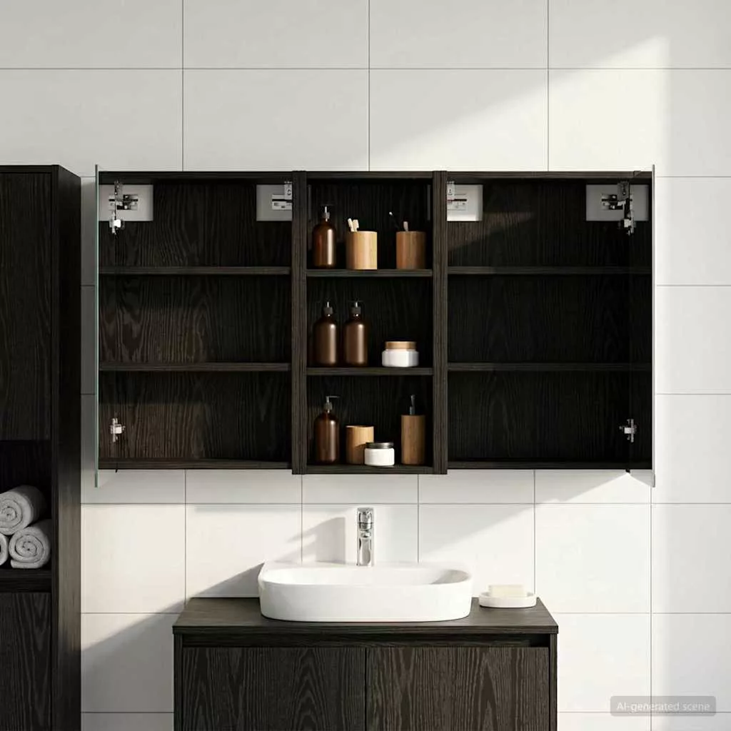 Ez a Fürdőszoba Szekrény Szett a modern fürdőszobák stílusos és praktikus megoldása. Az összeszerelt fa és a letisztult vonalak kombinációja egy különleges kétirányú tükröt rejteget, ami nemcsak optikailag növeli a teret, hanem izgalmat is csempész a fürdőszobába. Ez a szett tökéletes választás otthoni tulajdonosoknak és profi dizájnereknek egyaránt, hiszen nemcsak praktikus tárolást biztosít, de a minimalista dizájnnal és erős LED világítással feldobja a fürdőszoba hangulatát. A forma és funkció tökéletes párosítása! Összeszerelt fa felépítés: Ez a fürdőszoba szekrény szuper tartós és évekig bírja, ráadásul könnyen tisztítható, ami jól jön a nedves környezetben is. Kétfunkciós ajtók: A zsanéros üvegből készült ajtók simán működnek és elegáns átlátszóságot biztosítanak. Ezen belül rengeteg hely van a piperecikkeknek, így rendben tarthatod a fürdőszobádat. Innovatív világítás: Az állítható LED világítás gondoskodik róla, hogy mindig a legjobban láss, amikor a szépségápolásra kerül a sor, és emellett feldobja a fürdőszoba hangulatát is. USB-n keresztül működik, a lámpák nemcsak tárolásra jók, de jól is néznek ki. Kétirányú tükör: A különleges kétirányú tükör mélységet és eleganciát ad a szekrénynek. Perfect a privát fürdőszobákhoz, de ugyanolyan jól használható a sminkelés vagy borotválkozás során. Egyszerű falra szerelés: A modern lakásokhoz tervezve, a szekrény falra szerelhető, így helyet spórol és elegáns megjelenést ad. Ez a telepítési módszer bármilyen méretű fürdőszobába beleillik.