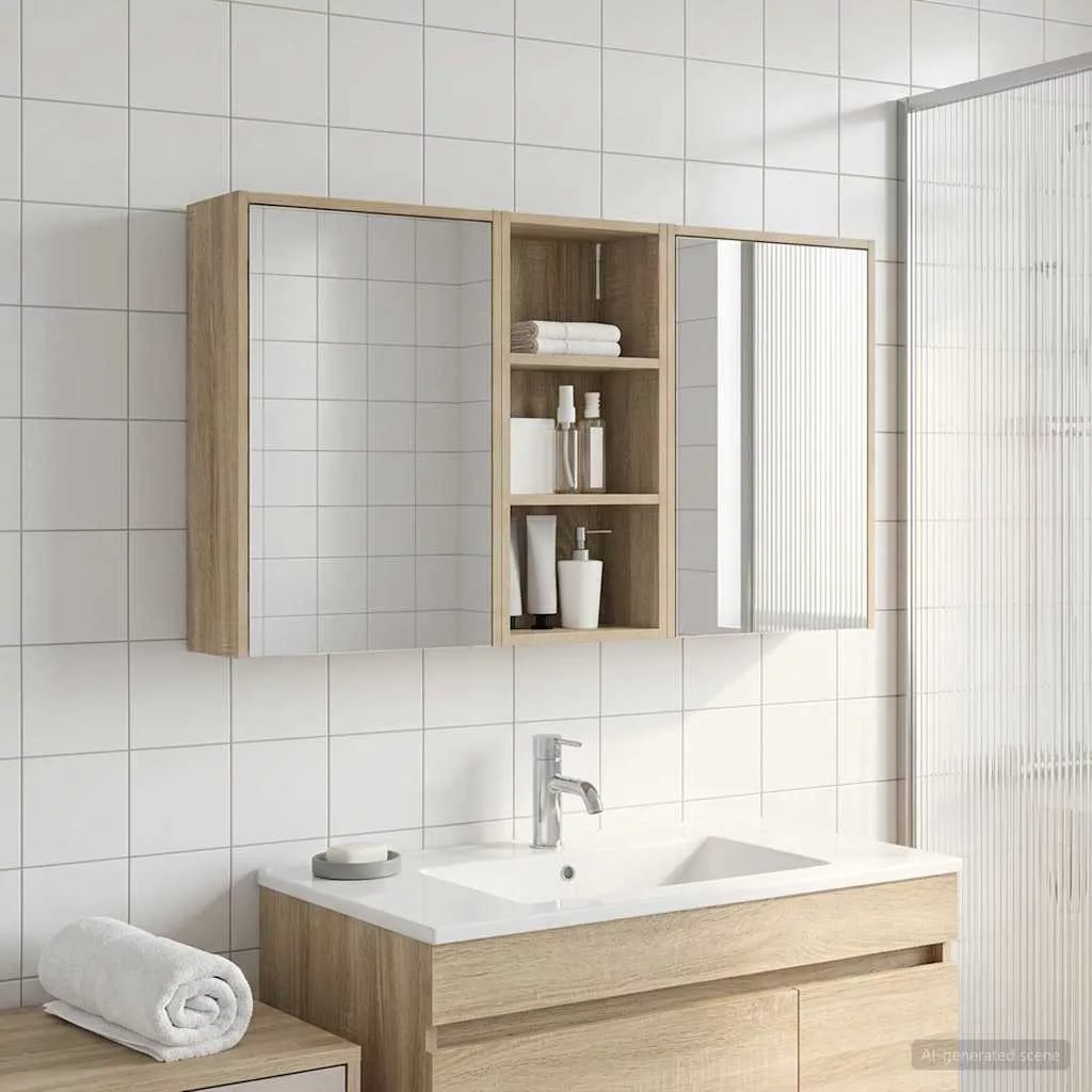 Ez a Fürdőszoba Szekrény Szett a modern fürdőszobák stílusos és praktikus megoldása. Az összeszerelt fa és a letisztult vonalak kombinációja egy különleges kétirányú tükröt rejteget, ami nemcsak optikailag növeli a teret, hanem izgalmat is csempész a fürdőszobába. Ez a szett tökéletes választás otthoni tulajdonosoknak és profi dizájnereknek egyaránt, hiszen nemcsak praktikus tárolást biztosít, de a minimalista dizájnnal és erős LED világítással feldobja a fürdőszoba hangulatát. A forma és funkció tökéletes párosítása! Összeszerelt fa felépítés: Ez a fürdőszoba szekrény szuper tartós és évekig bírja, ráadásul könnyen tisztítható, ami jól jön a nedves környezetben is. Kétfunkciós ajtók: A zsanéros üvegből készült ajtók simán működnek és elegáns átlátszóságot biztosítanak. Ezen belül rengeteg hely van a piperecikkeknek, így rendben tarthatod a fürdőszobádat. Innovatív világítás: Az állítható LED világítás gondoskodik róla, hogy mindig a legjobban láss, amikor a szépségápolásra kerül a sor, és emellett feldobja a fürdőszoba hangulatát is. USB-n keresztül működik, a lámpák nemcsak tárolásra jók, de jól is néznek ki. Kétirányú tükör: A különleges kétirányú tükör mélységet és eleganciát ad a szekrénynek. Perfect a privát fürdőszobákhoz, de ugyanolyan jól használható a sminkelés vagy borotválkozás során. Egyszerű falra szerelés: A modern lakásokhoz tervezve, a szekrény falra szerelhető, így helyet spórol és elegáns megjelenést ad. Ez a telepítési módszer bármilyen méretű fürdőszobába beleillik.
