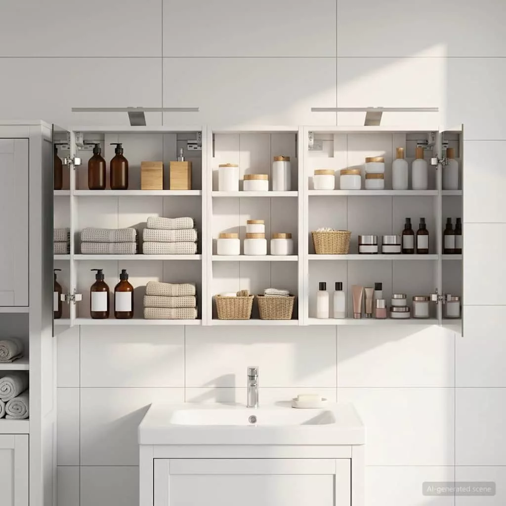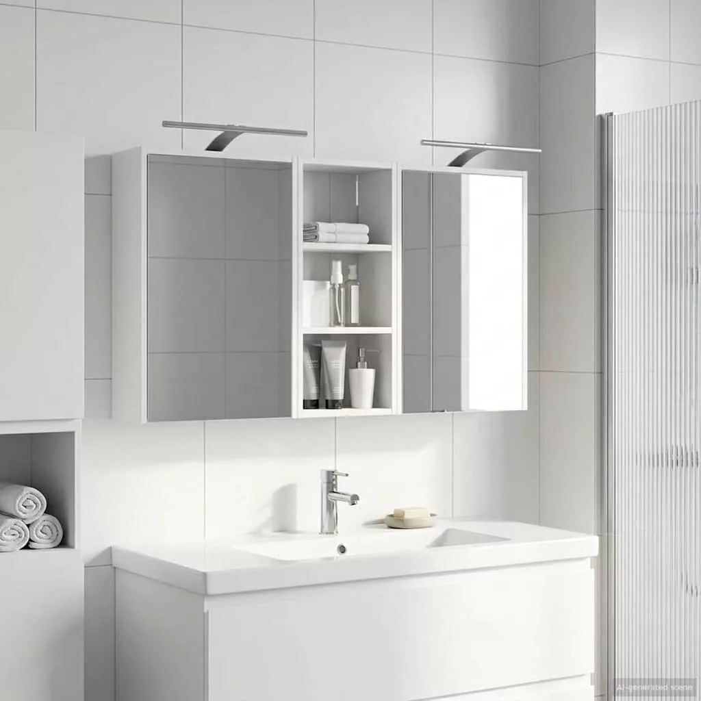 Ez a Fürdőszoba Szekrény Szett a modern fürdőszobák stílusos és praktikus megoldása. Az összeszerelt fa és a letisztult vonalak kombinációja egy különleges kétirányú tükröt rejteget, ami nemcsak optikailag növeli a teret, hanem izgalmat is csempész a fürdőszobába. Ez a szett tökéletes választás otthoni tulajdonosoknak és profi dizájnereknek egyaránt, hiszen nemcsak praktikus tárolást biztosít, de a minimalista dizájnnal és erős LED világítással feldobja a fürdőszoba hangulatát. A forma és funkció tökéletes párosítása! Összeszerelt fa felépítés: Ez a fürdőszoba szekrény szuper tartós és évekig bírja, ráadásul könnyen tisztítható, ami jól jön a nedves környezetben is. Kétfunkciós ajtók: A zsanéros üvegből készült ajtók simán működnek és elegáns átlátszóságot biztosítanak. Ezen belül rengeteg hely van a piperecikkeknek, így rendben tarthatod a fürdőszobádat. Innovatív világítás: Az állítható LED világítás gondoskodik róla, hogy mindig a legjobban láss, amikor a szépségápolásra kerül a sor, és emellett feldobja a fürdőszoba hangulatát is. USB-n keresztül működik, a lámpák nemcsak tárolásra jók, de jól is néznek ki. Kétirányú tükör: A különleges kétirányú tükör mélységet és eleganciát ad a szekrénynek. Perfect a privát fürdőszobákhoz, de ugyanolyan jól használható a sminkelés vagy borotválkozás során. Egyszerű falra szerelés: A modern lakásokhoz tervezve, a szekrény falra szerelhető, így helyet spórol és elegáns megjelenést ad. Ez a telepítési módszer bármilyen méretű fürdőszobába beleillik. Kérjük, vegye figyelembe, hogy csak tanúsított DC 5V bemenetet használjon. A magasabb feszültség túlmelegedést okozhat, és károsíthatja a készüléket, valamint túlhevülés és tűz kockázatát jelentheti. Ne csatlakoztassa ezt a terméket semmilyen más tápegységhez, mint amit a kézikönyvben, a névtáblán vagy a vidaXL kifejezetten ajánlott. Ezt a készüléket nem használhatják 14 évesnél fiatalabb gyermekek, valamint csökkent fizikai, érzékszervi vagy mentális képességekkel rendelkező személyek, vagy elektronikai eszközök használatában tapasztalatlan vagy tudás nélküli személyek. Az elektromosság veszélyes. A nem megfelelő telepítés, használat vagy módosítás (egyedi alkatrészek cseréje) a készülék károsodásához vezethet, áramütést és veszélyt okozva a felhasználónak. Ne működtesse ezt a terméket robbanásveszélyes atmoszférában, például gyúlékony folyadékok, gázok és por jelenlétében, vagy 50 Celsius foknál magasabb hőmérsékleten. Ne kapcsolja be a terméket, ha a csatlakozó kábel vagy tápegység láthatóan sérült. Ha a lámpa külső hajlékony kábele vagy vezetékje sérült, azt kizárólag a gyártó vagy annak szervizügynöke, illetve hasonló képesítéssel rendelkező személy cserélheti ki, hogy elkerülje a veszélyt. A telepítés és karbantartás alatt kapcsolja ki az áramot. Győződjön meg arról, hogy a fényforrások lehűltek. Ennek a lámpatestnek a fényforrása nem cserélhető; ha a fényforrás elérte élettartamának végét, az egész lámpát ki kell cserélni. Csak belső használatra, ne használja kültéren.