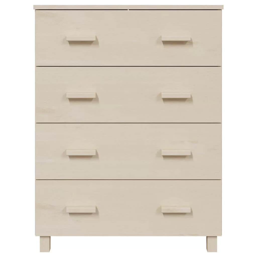 Ez a fa tálalószekrény dekoratív és praktikus kiegészítője lesz otthonának. Ez a fiókos szekrény tömör fenyőfából készült, így erős és stabil. A szekrény négy könnyen kihúzható fiókkal rendelkezik, melyek bőséges helyet kínálnak mindennapi tárgyai kézközelben történő rendezett tárolásához. Emellett az erős asztallap ideális dísztárgyak, képkeretek és cserepes növények elhelyezéséhez.