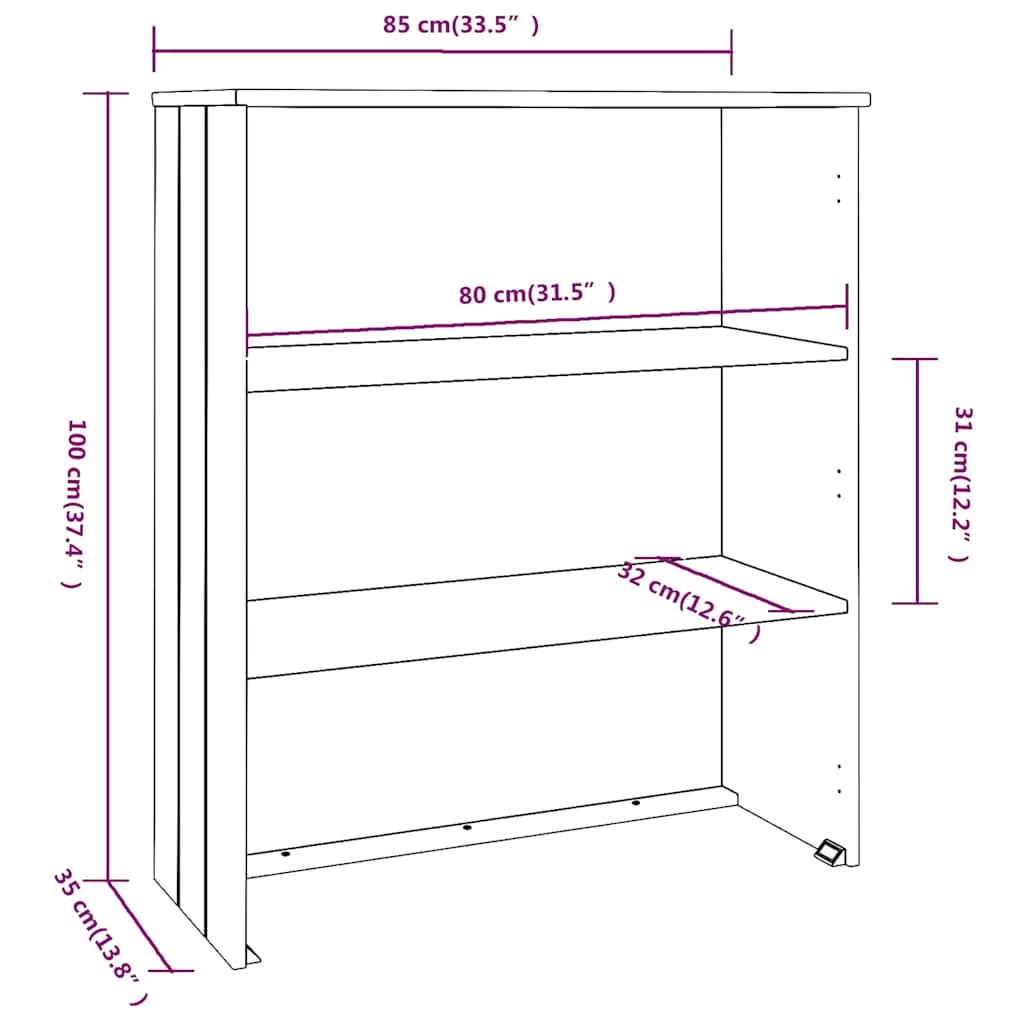 Csempésszen egy csipetnyi egyedi bájt otthonába ezzel a fából készült felső tálalószekrény-elemmel! Tömör fenyőfa: A tömör fenyőfa egy gyönyörű természetes anyag. Kezelje a felületet olajjal, viasszal, lakkal vagy mázzal az erősebb felület kialakítása és az egyszerű tisztítás érdekében. A fenyőfa erezete egyenes, a csomók adják az anyag jellegzetes, rusztikus megjelenését.Erős és stabil váz: A felső szekrényelem fa váza erős szerkezetet és stabilitást biztosít.Bőséges tárolóhely: A felső tárolószekrény-elem 2 polccal rendelkezik. A bőséges tárolóhely megkönnyíti a különféle tárgyak elrendezését. Kitűnő választás extra tárolóhely kialakításához. Figyelem:A dőlés megakadályozása érdekében a mellékelt tartóelem segítségével rögzíteni kell a falhoz!