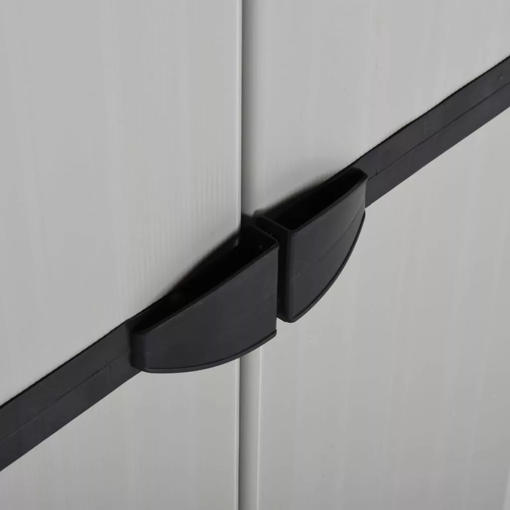 A tárolószekrény időtlen dizájnjának hála bármely berendezésbe képes beilleszkedni. Ideális kertben, teraszon és hasonló helyeken való használatra. Ez a teraszszekrény PVC-ből és PP-ből (polipropilén) készült, így stabil, tartós és könnyen tisztítható. A 3 polccal ellátott szekrény bőséges tárolóhelyet kínál akár hosszabb tárgyak számára is, mint például seprűk, porszívócsövek, horgászbotok stb. A kültéri szekrény a biztonság növelése érdekében lakattal zárható (a lakat nem része a csomagnak). A kerti szekrény kompakt dizájnt kapott és a legkisebb helyből is a maximumot hozza ki.