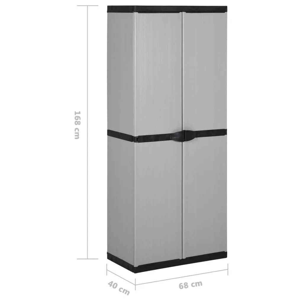szürke-fekete kerti tárolószekrény 3 polccal 68 x 40 x 168 cm