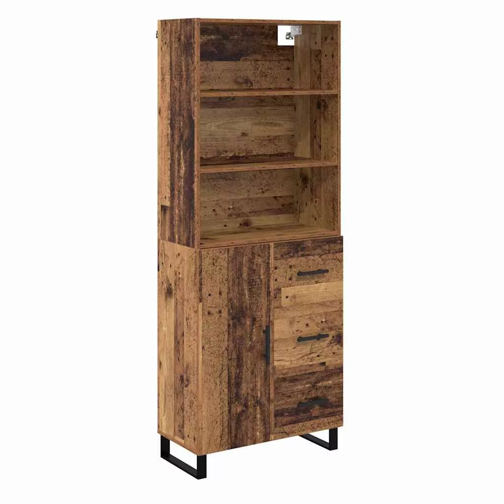 Magasfiú fiókkal Öreg fa 69,5 x 34 x 180 cm Műanyag Fa és Üveg
