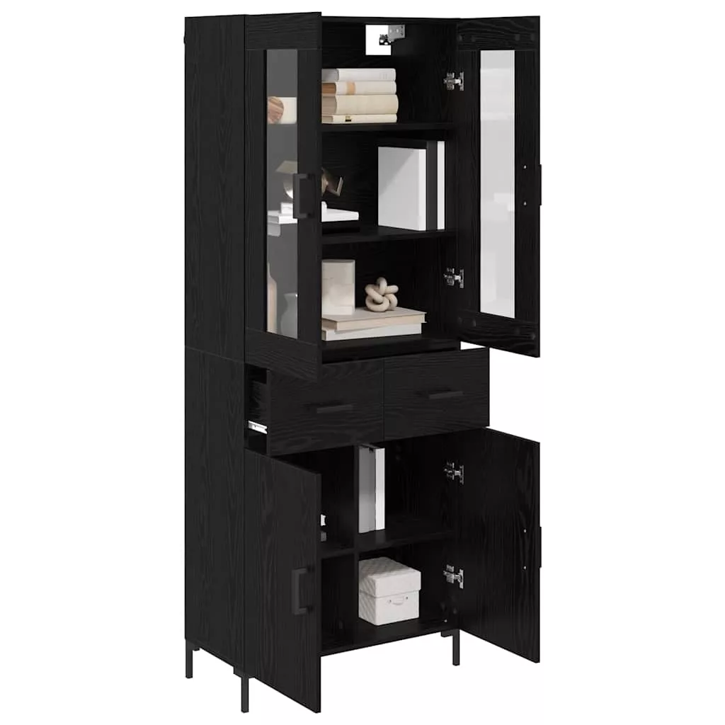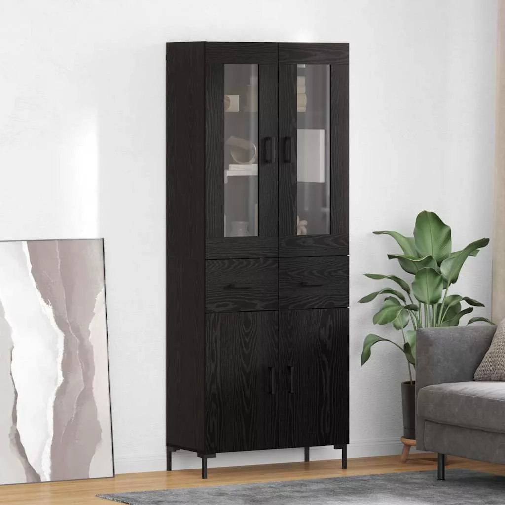 Magasfiú fiókkal 2 pcs Fekete tölgy 69,5 x 34 x 180 cm Faanyag