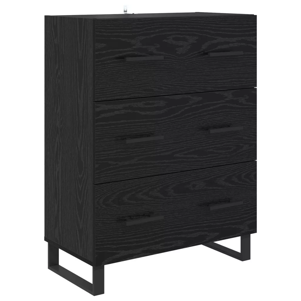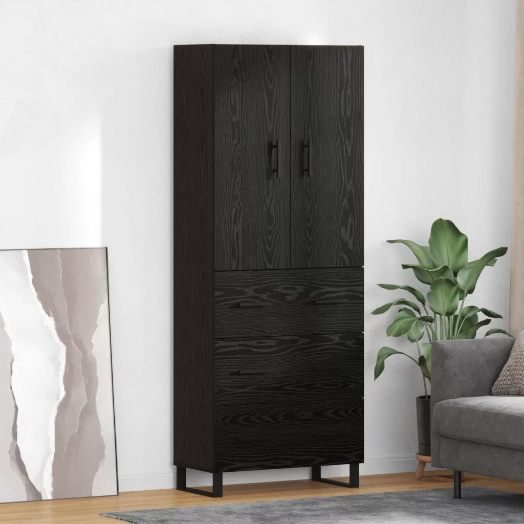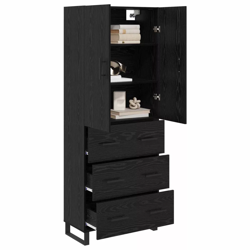 Magasfiú fiókkal 2 pcs Fekete tölgy Műanyag Fa és Üveg