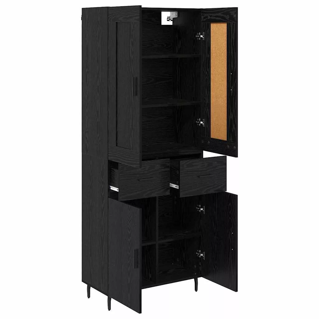 Magasfiú fiókkal 2 pcs Fekete tölgy 69,5 x 34 x 180 cm Faanyag