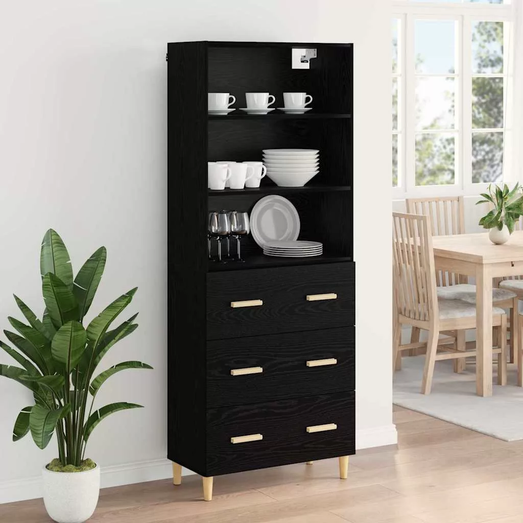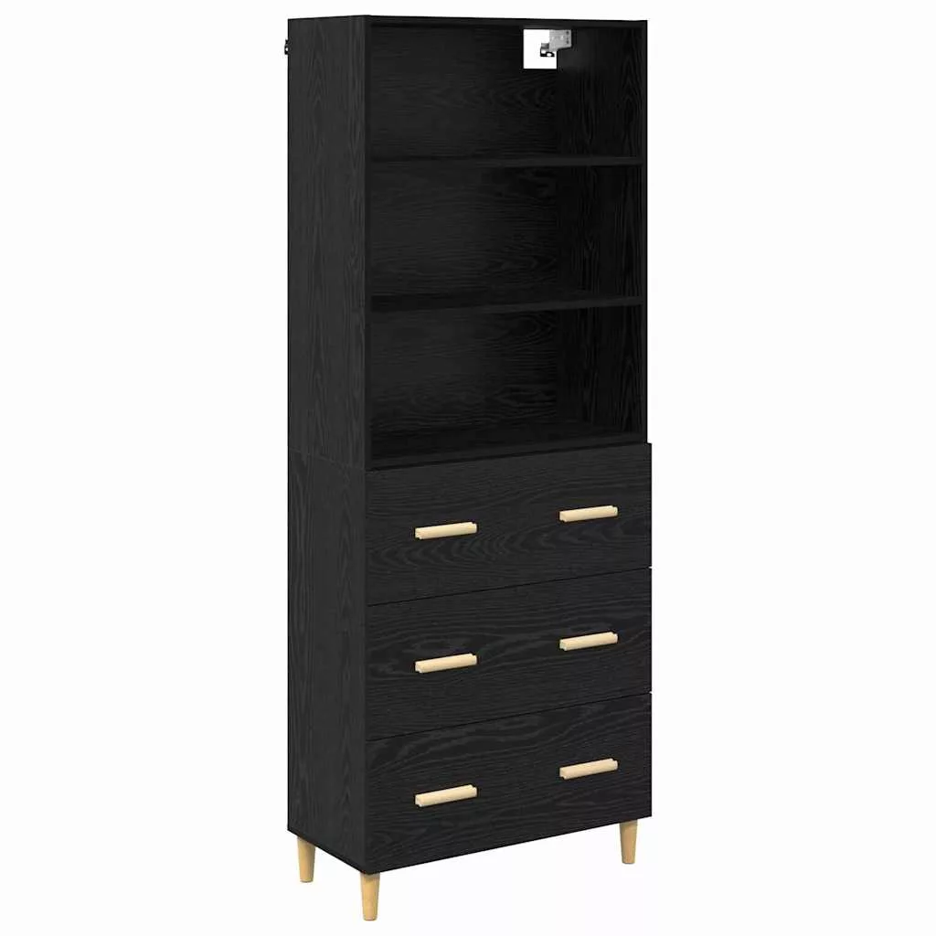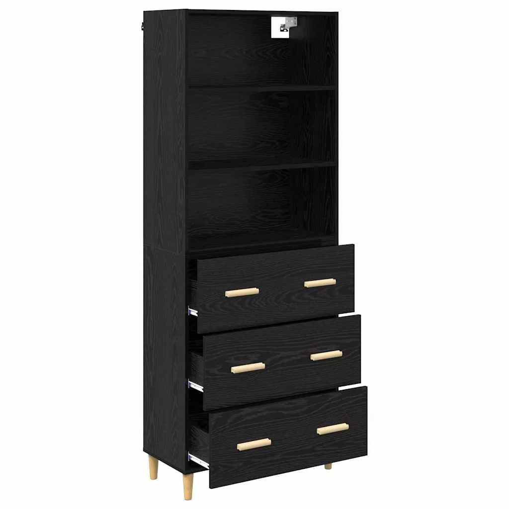 Magasfiú fiókkal 2 pcs Fekete tölgy 69,5 x 34 x 180 cm Faanyag