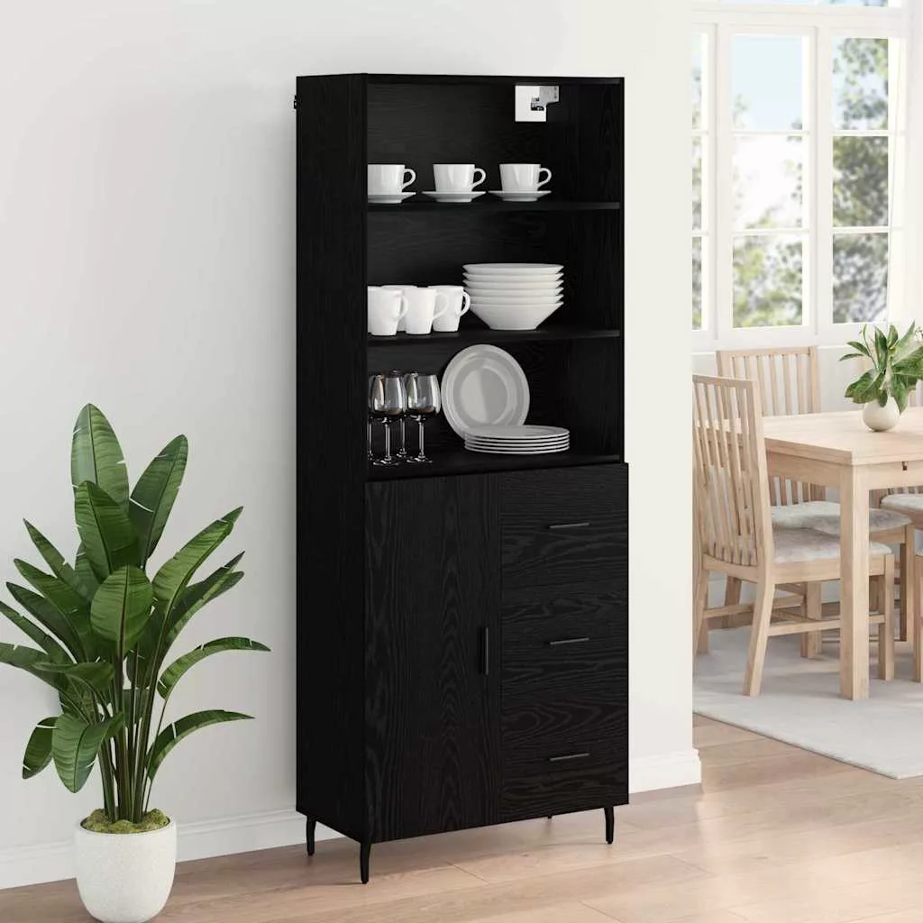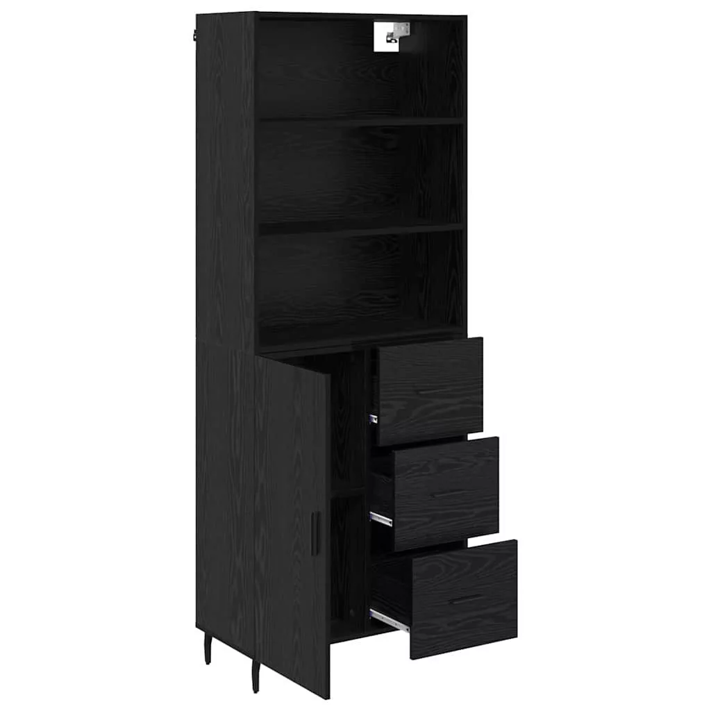 Magasfiú fiókkal 2 pcs Fekete tölgy 69,5 x 34 x 180 cm Faanyag