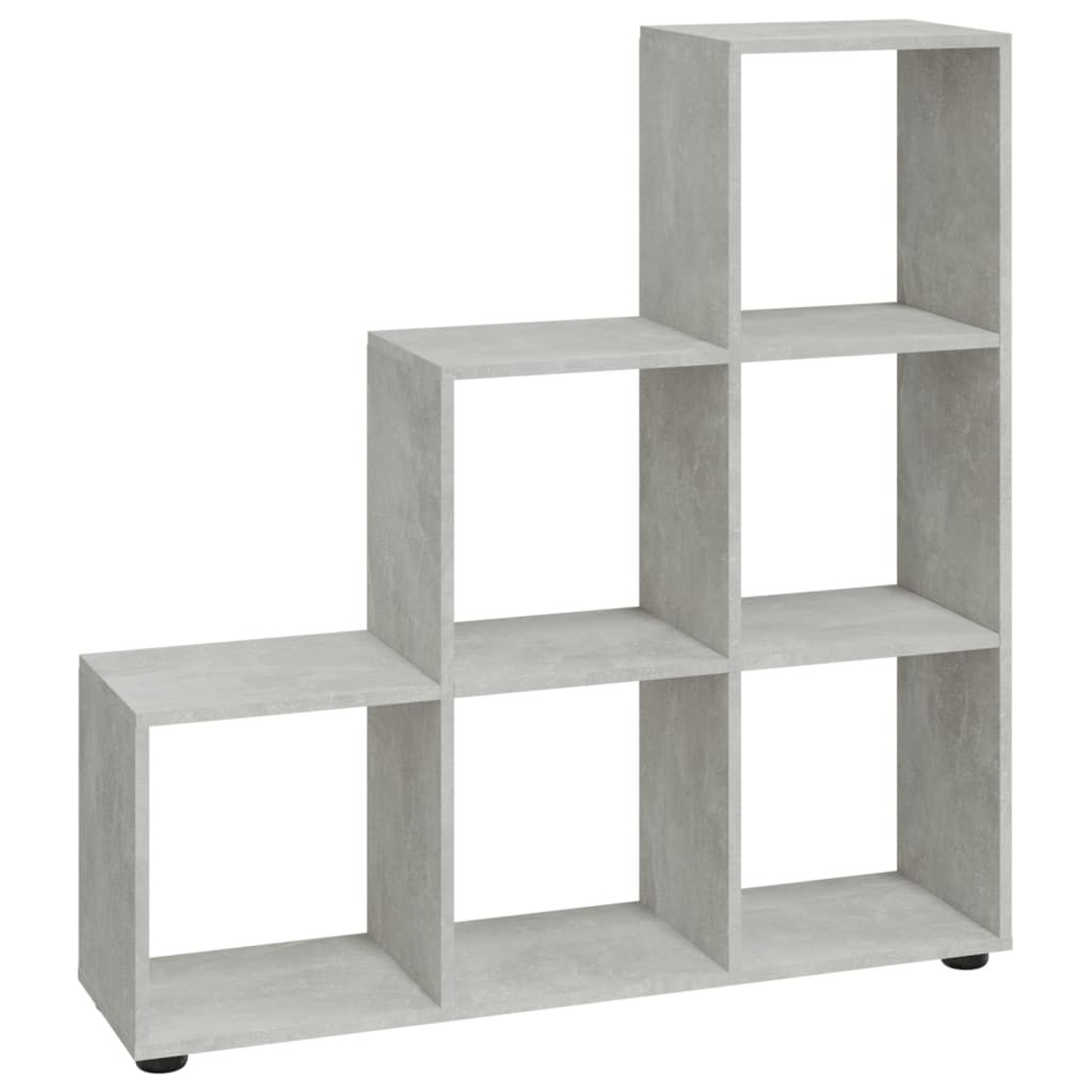 betonszürke szerelt fa lépcsős könyvespolc 107 cm