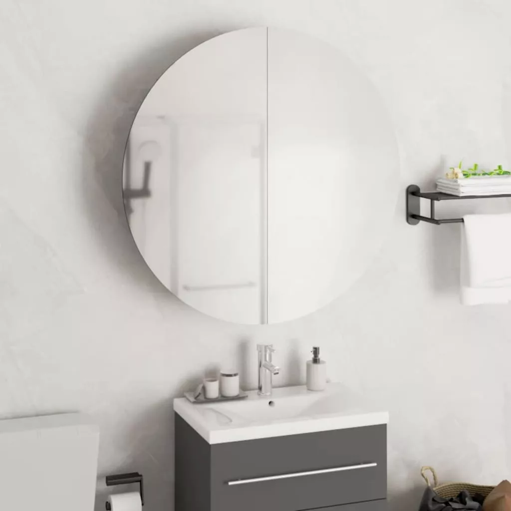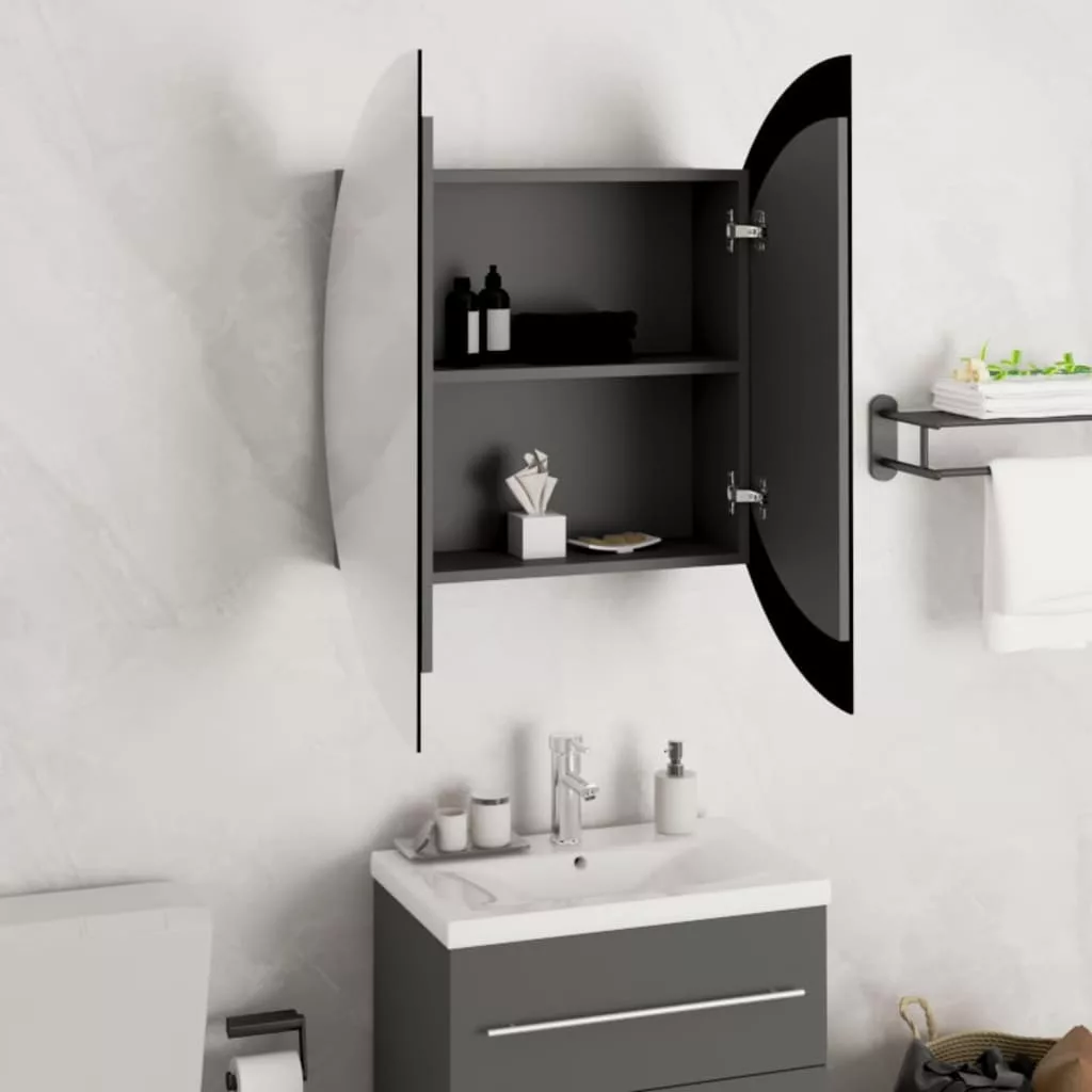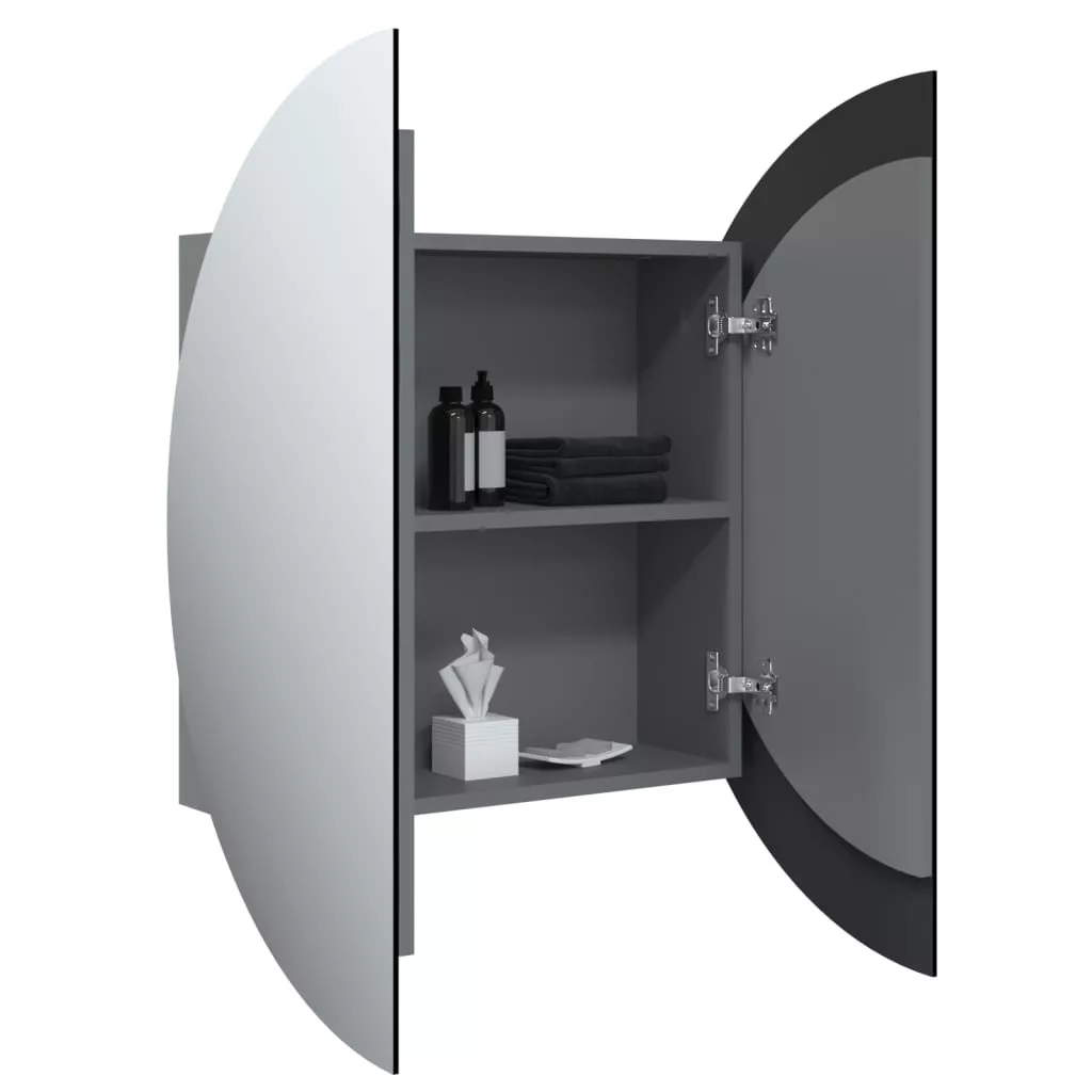 szürke fürdőszobaszekrény kerek tükörrel/LED-del 54x54x17,5 cm
