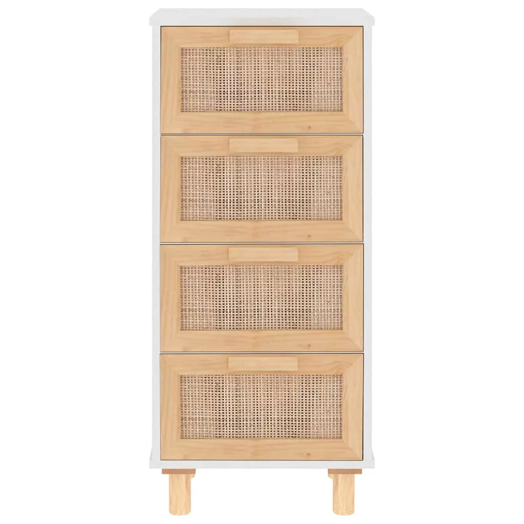 fehér tömör fenyő/természetes rattan tálalószekrény 40x30x90 cm