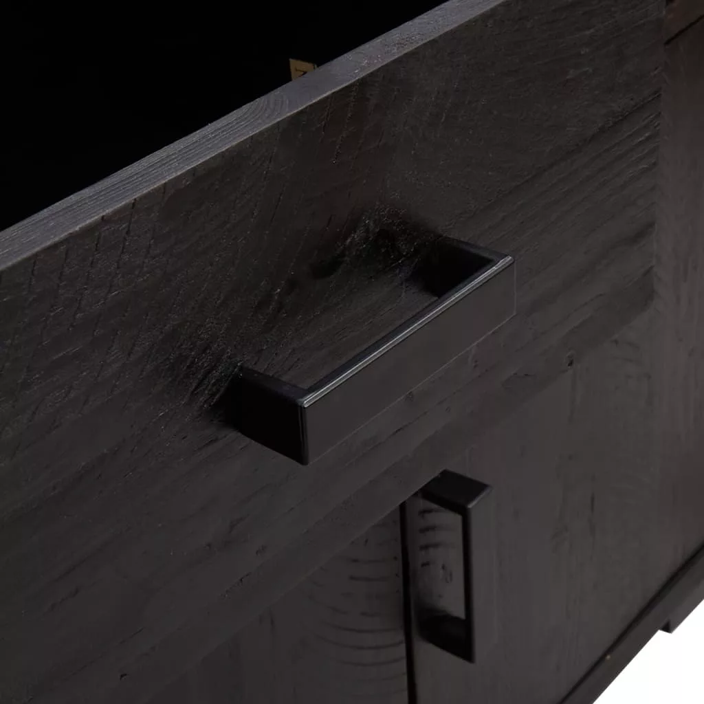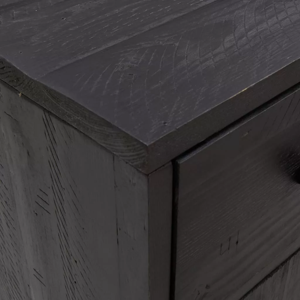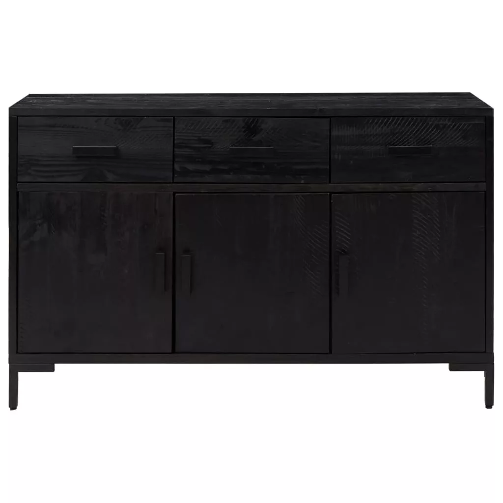 fekete tömör újrahasznosított fenyő tálalószekrény 110x35x70cm