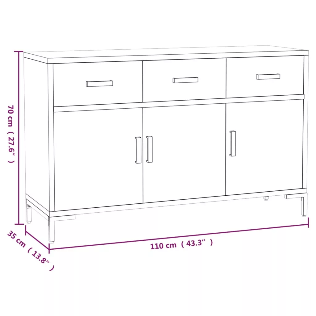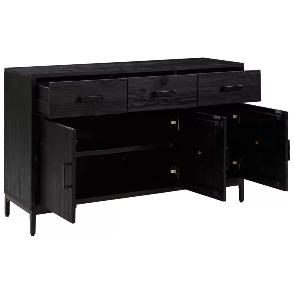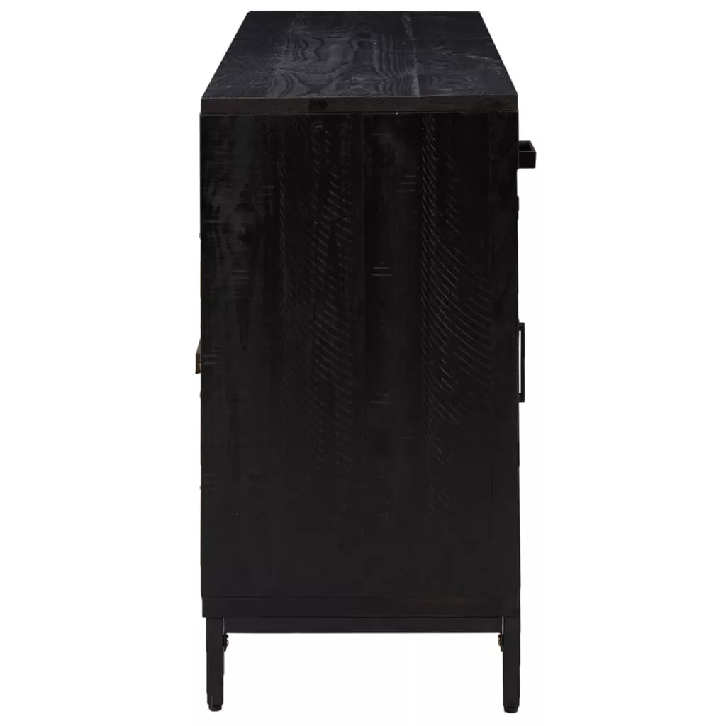 fekete tömör újrahasznosított fenyő tálalószekrény 110x35x70cm