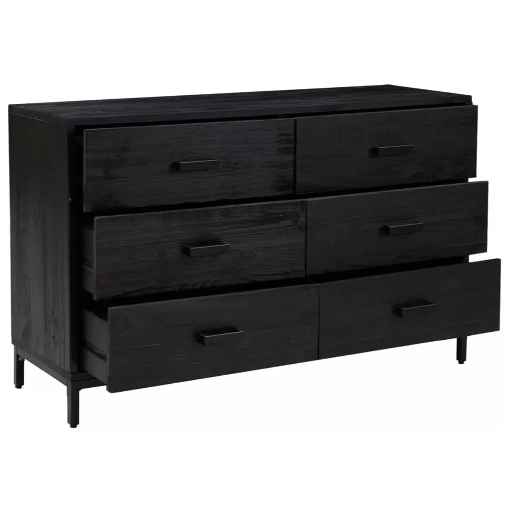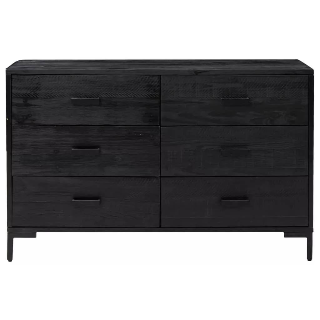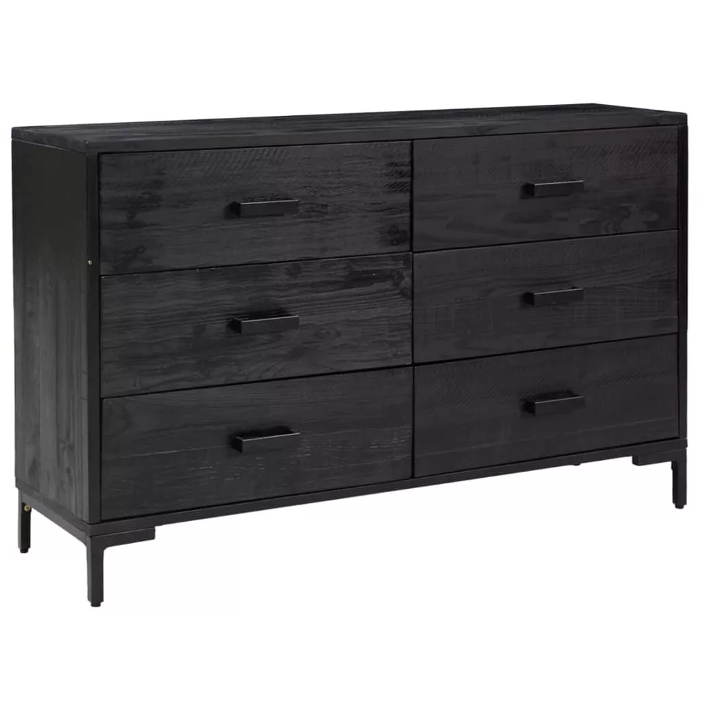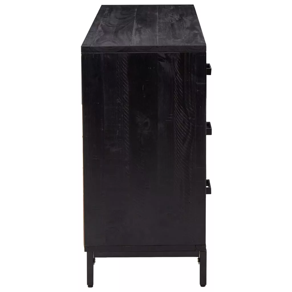 fekete tömör újrahasznosított fenyő tálalószekrény 110x35x70cm