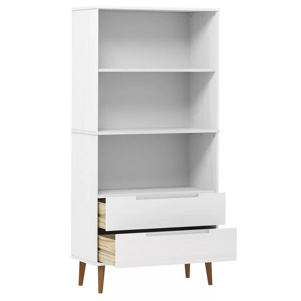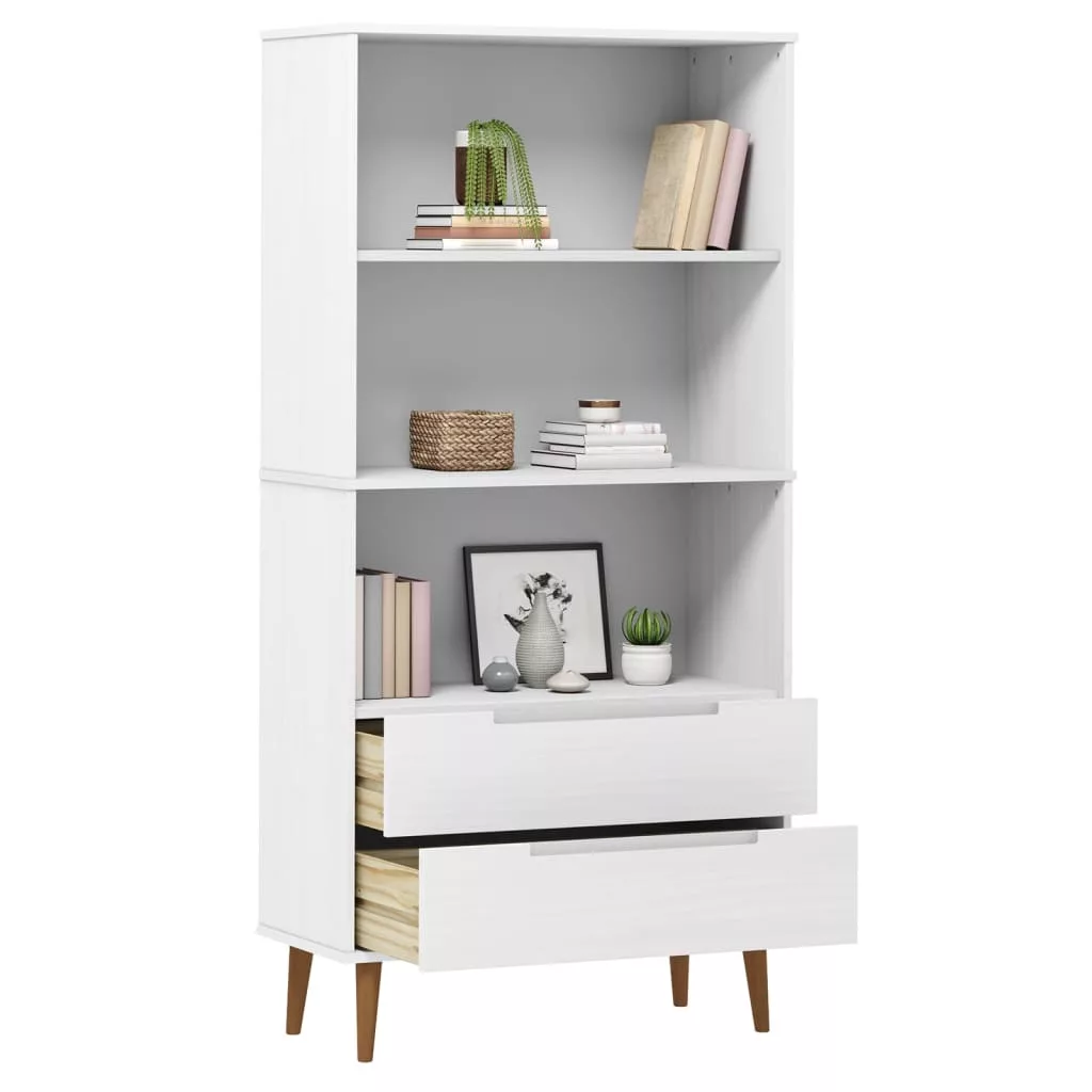 MOLDE fehér tömör fenyőfa könyvszekrény 85 x 35 x 170,5 cm