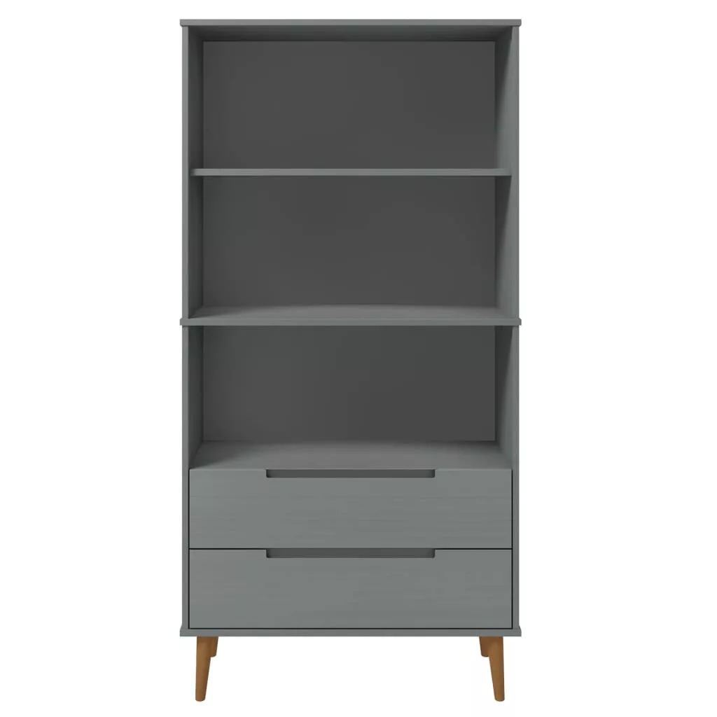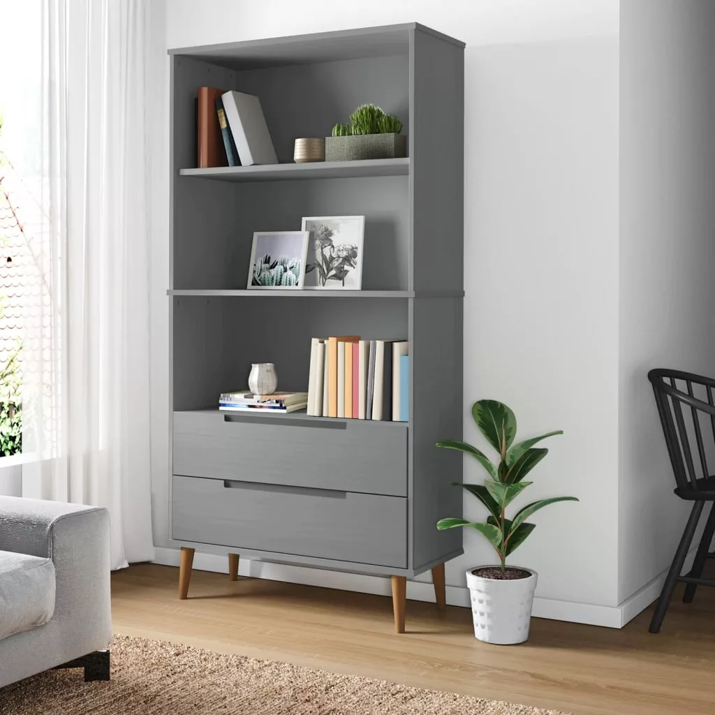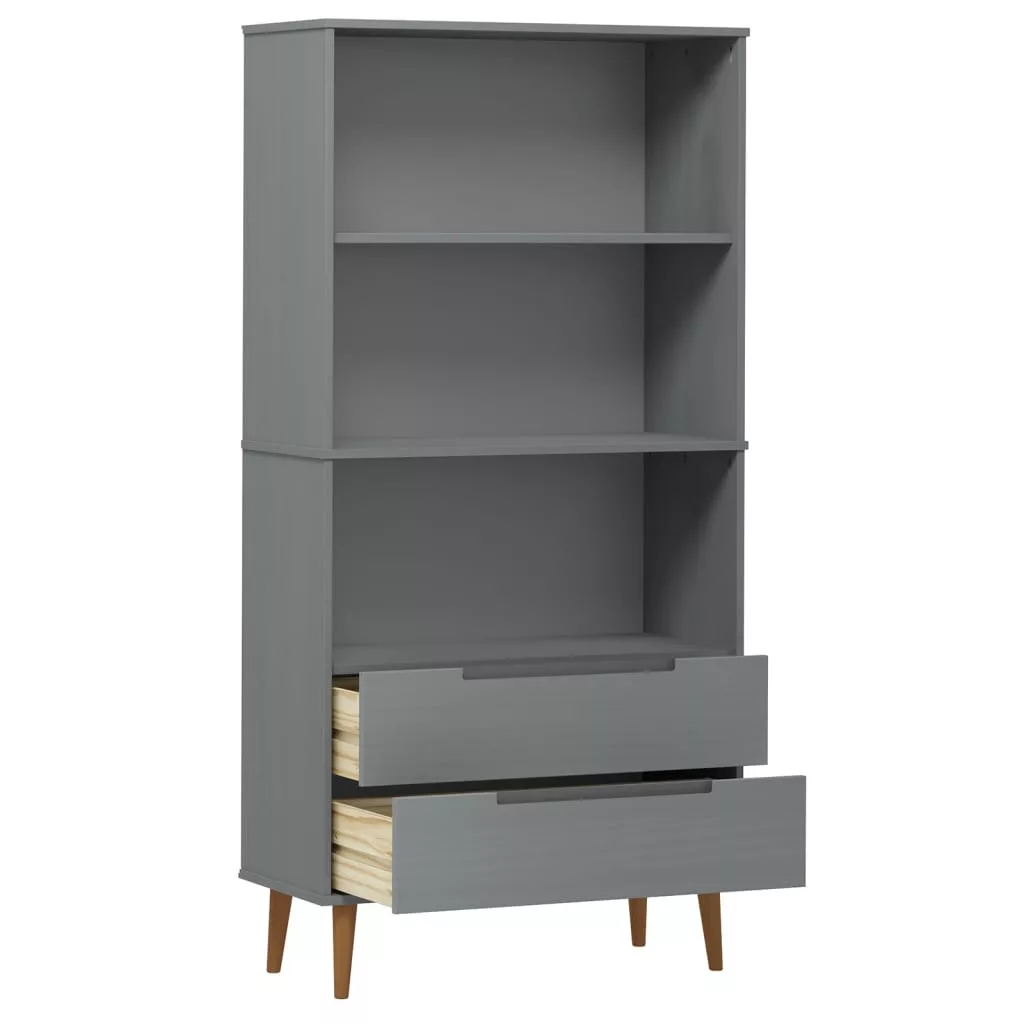 MOLDE szürke tömör fenyőfa könyvszekrény 85 x 35 x 170,5 cm