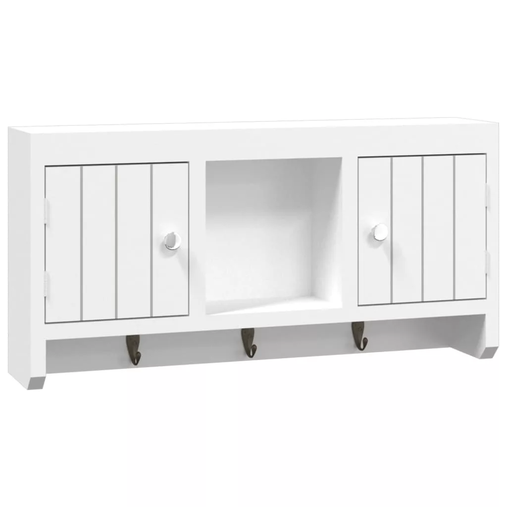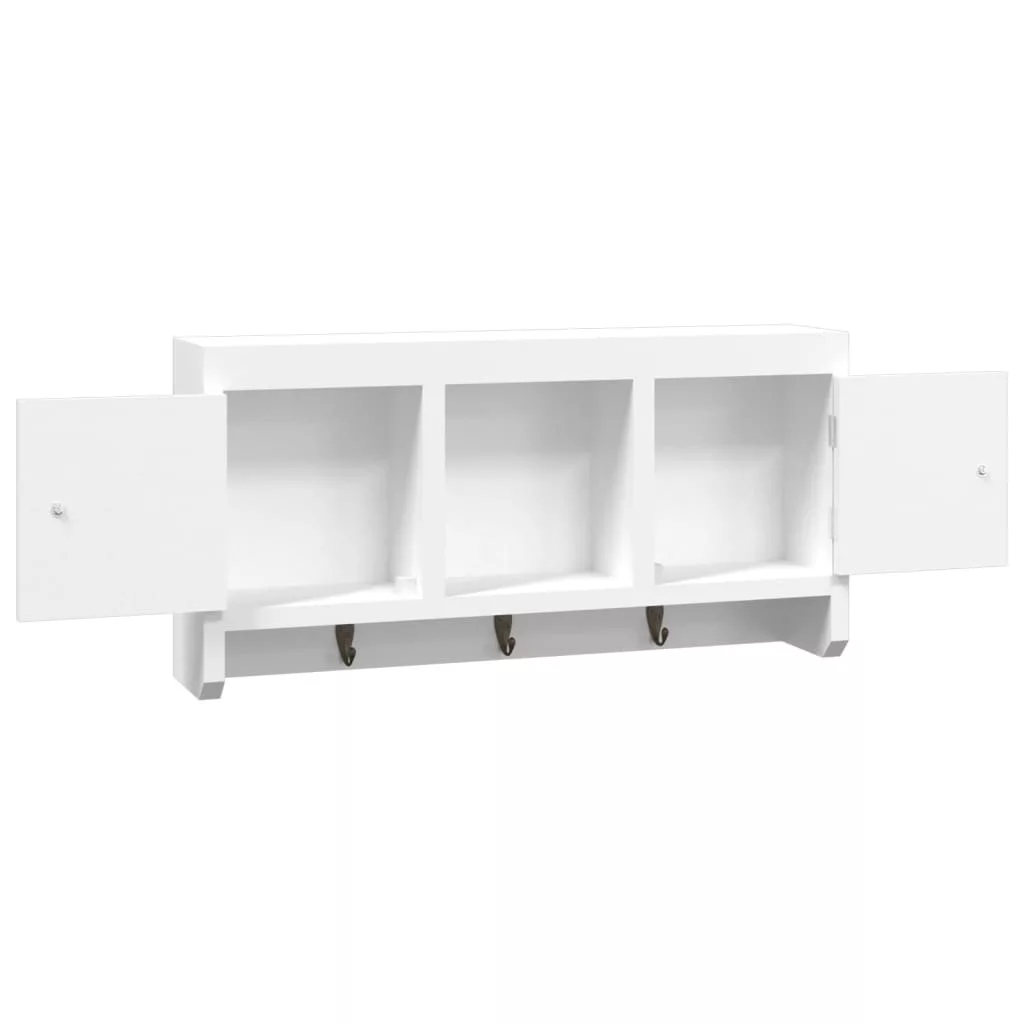 Ez az elegáns, akasztókkal ellátott szekrény ideális választás kulcsai, napszemüvegei, ékszerei és egyéb kellékei elrendezésére. Tartós anyag: A szerelt fa kivételes minőségű, sima felületű, szilárd, stabil, és ellenáll a nedvességnek.Bőséges tárolóhely: A faliszekrény 3 acélakasztóval van ellátva a kulcsok számára. A 2 darab ajtós rekesz és a középső polc bőséges helyet kínál pénztárcák, mobiltelefonok, napszemüvegek, ékszerek és egyéb kellékek tárolásához.Falra szerelhető kialakítás: A falipolc stabilan a falra szerelhető, így különösen alkalmas szűk terekbe. Megjegyzés:Az egyszerű összeszerelés érdekében minden termékhez mellékelünk összeszerelési útmutatót.A falon belüli csavar(ok) és dugó(k) nem alaptartozékok. Keressen és használjon a falának megfelelő csavar(oka)t és dugó(ka)t. Ha bizonytalan, kérje szakember tanácsát. Gondosan olvassa el és kövesse a használati utasítás minden lépését.
